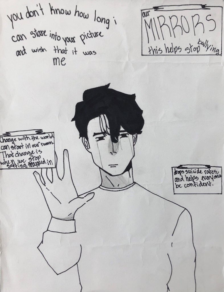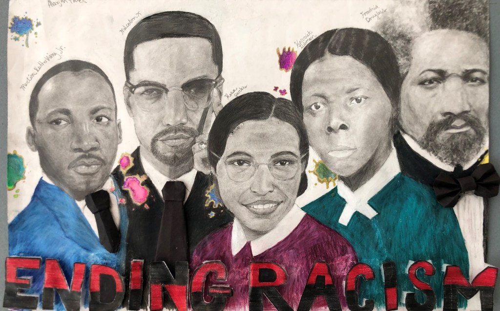 In 2021, we had 7 Student Entries in the Visual Arts category from Rodriguez Middle School. The theme was “I Will Change the World by…”