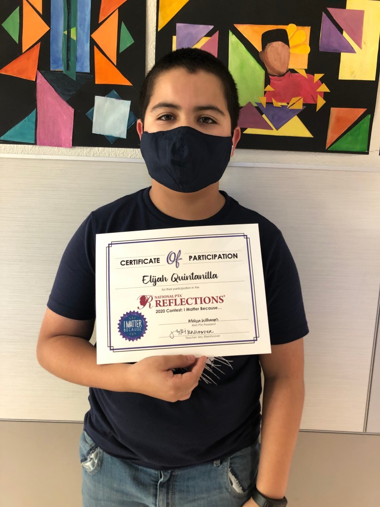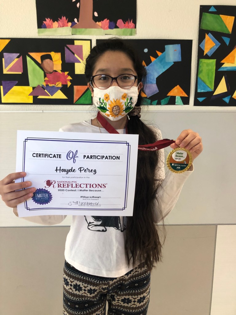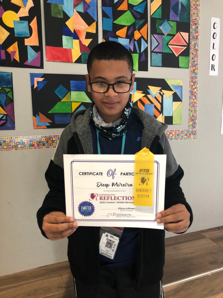 In 2020, we had 15 Student Entries in the Visual Arts category from Rodriguez Middle School. The theme was “I Matter Because…”