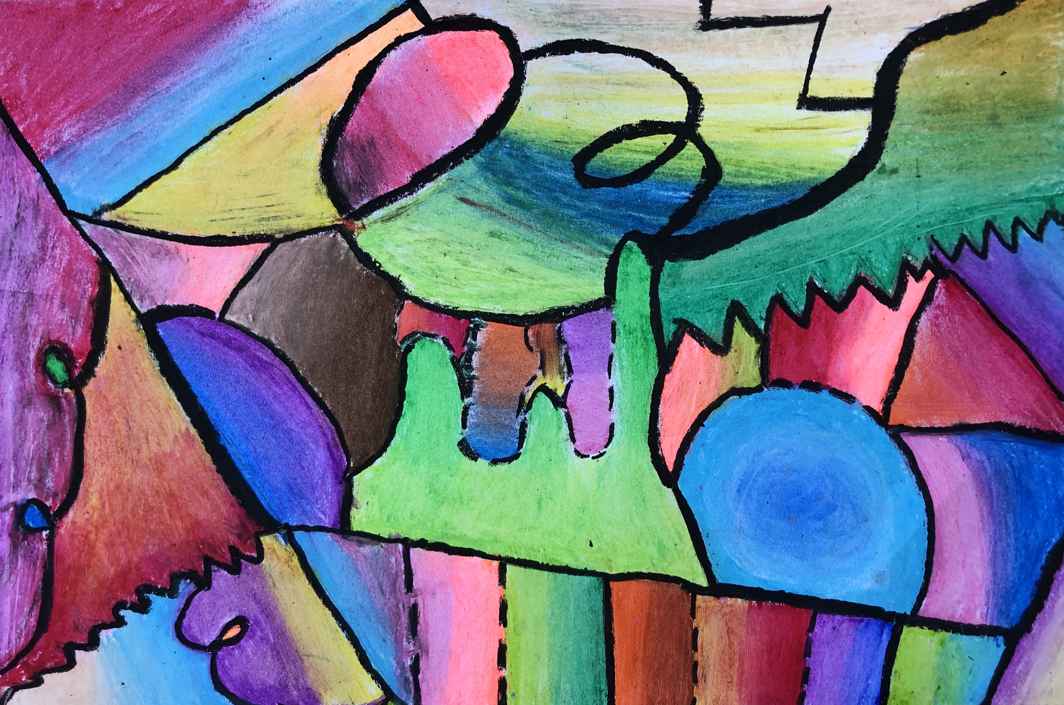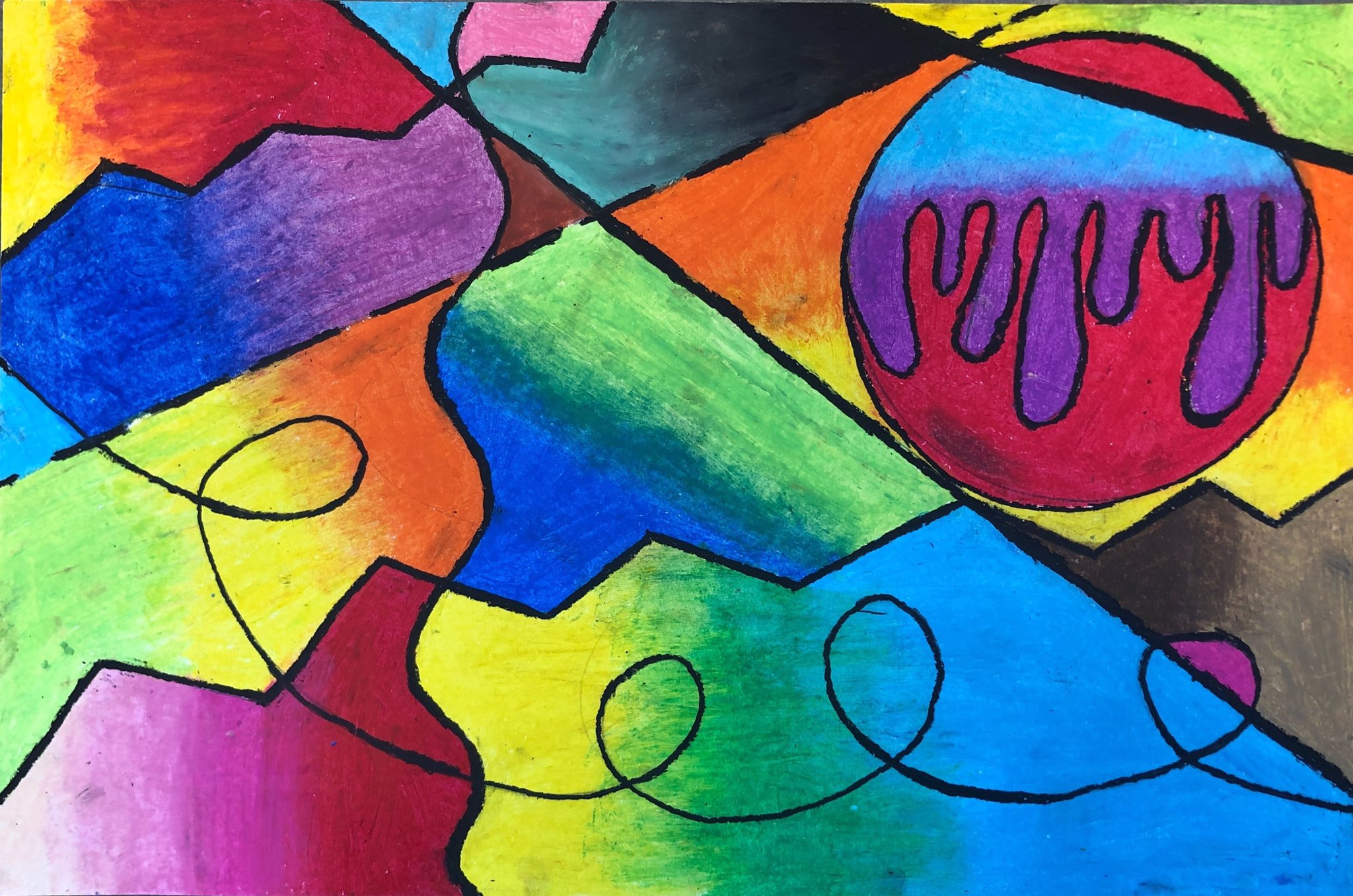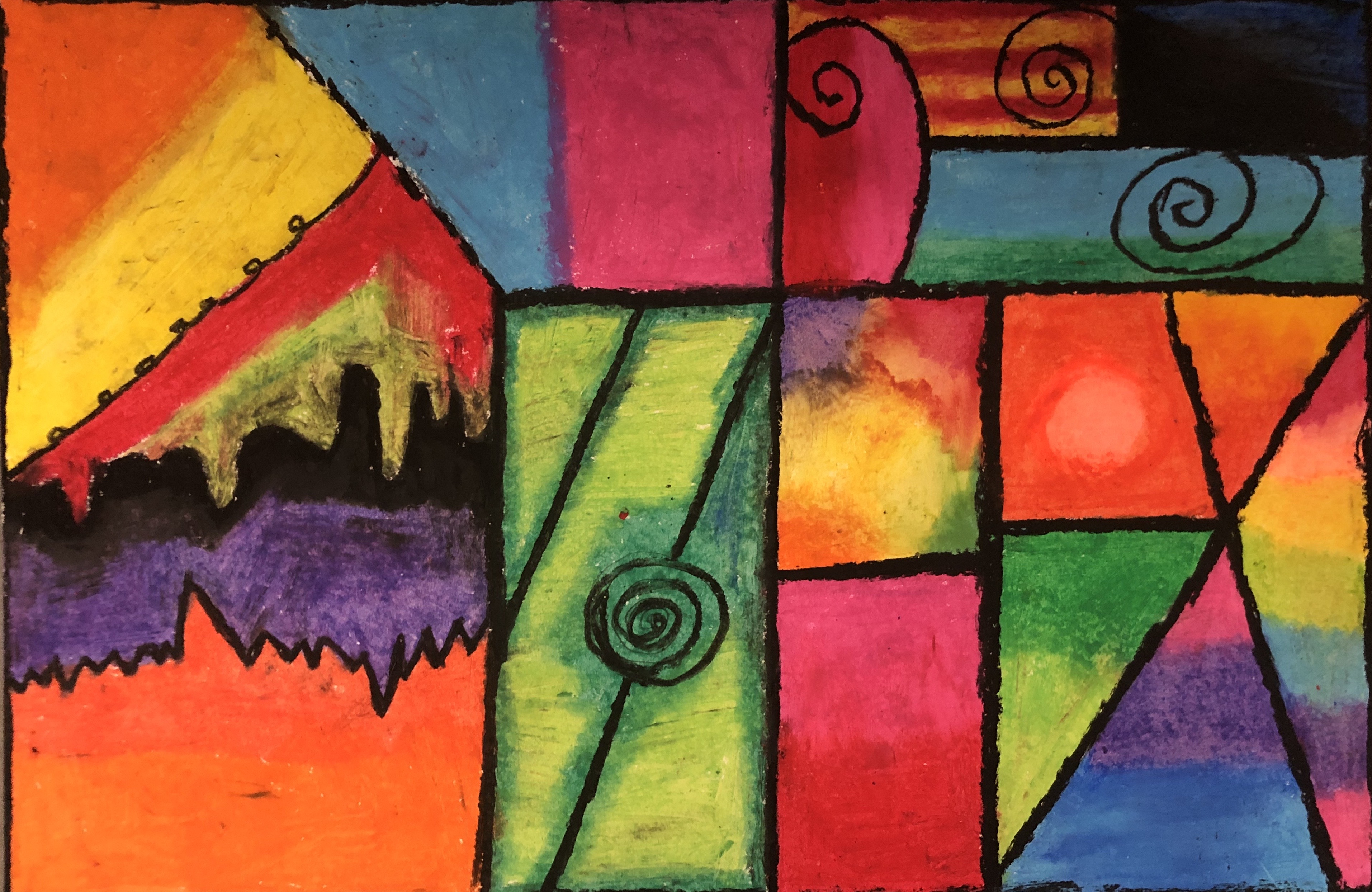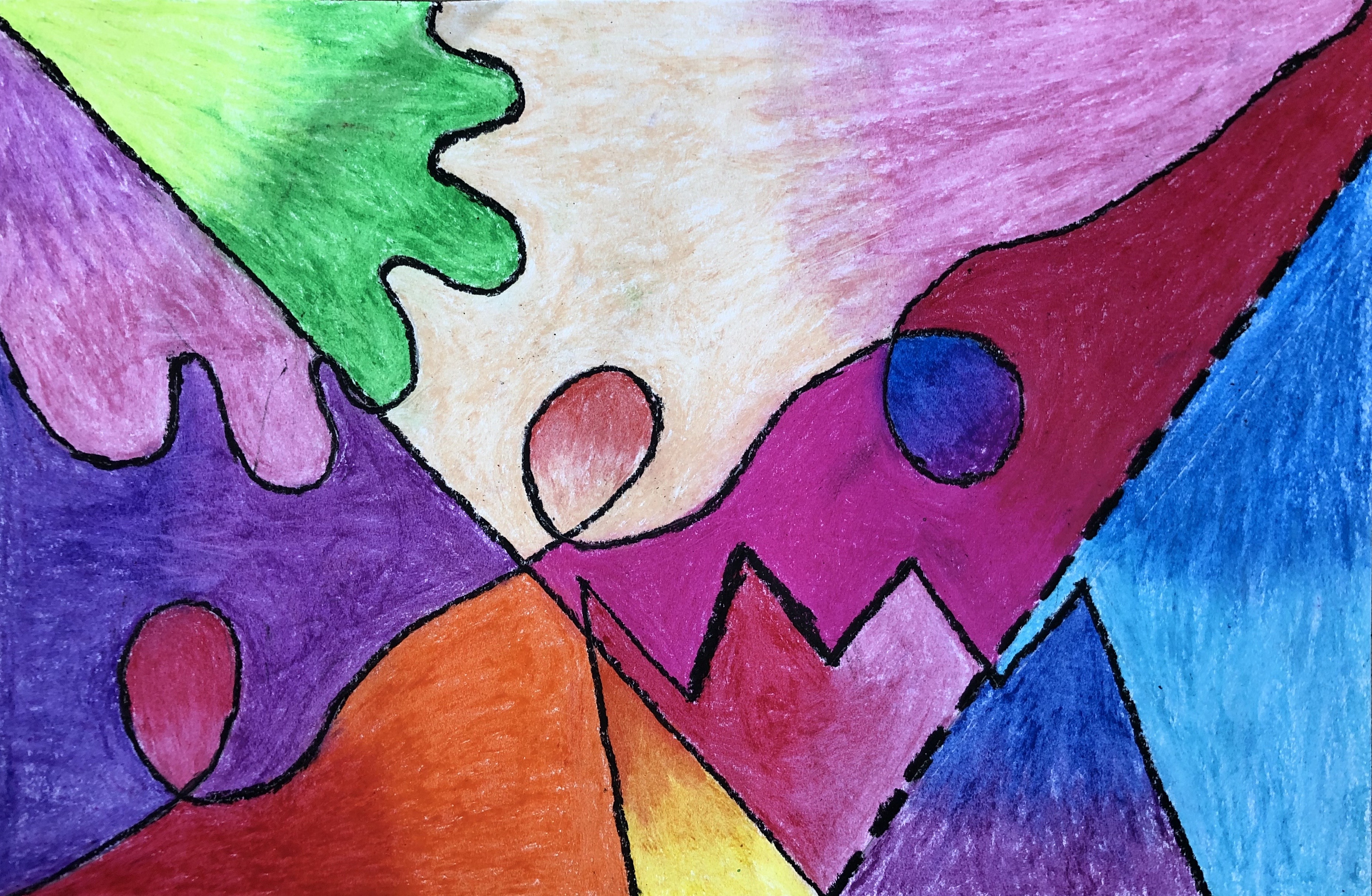 Students then learned how to use oil pastels and practiced blending colors together in their sketchbook. Connected Learners were instructed to use oil pastel, colored pencil, or crayon depending on what they had available at home.