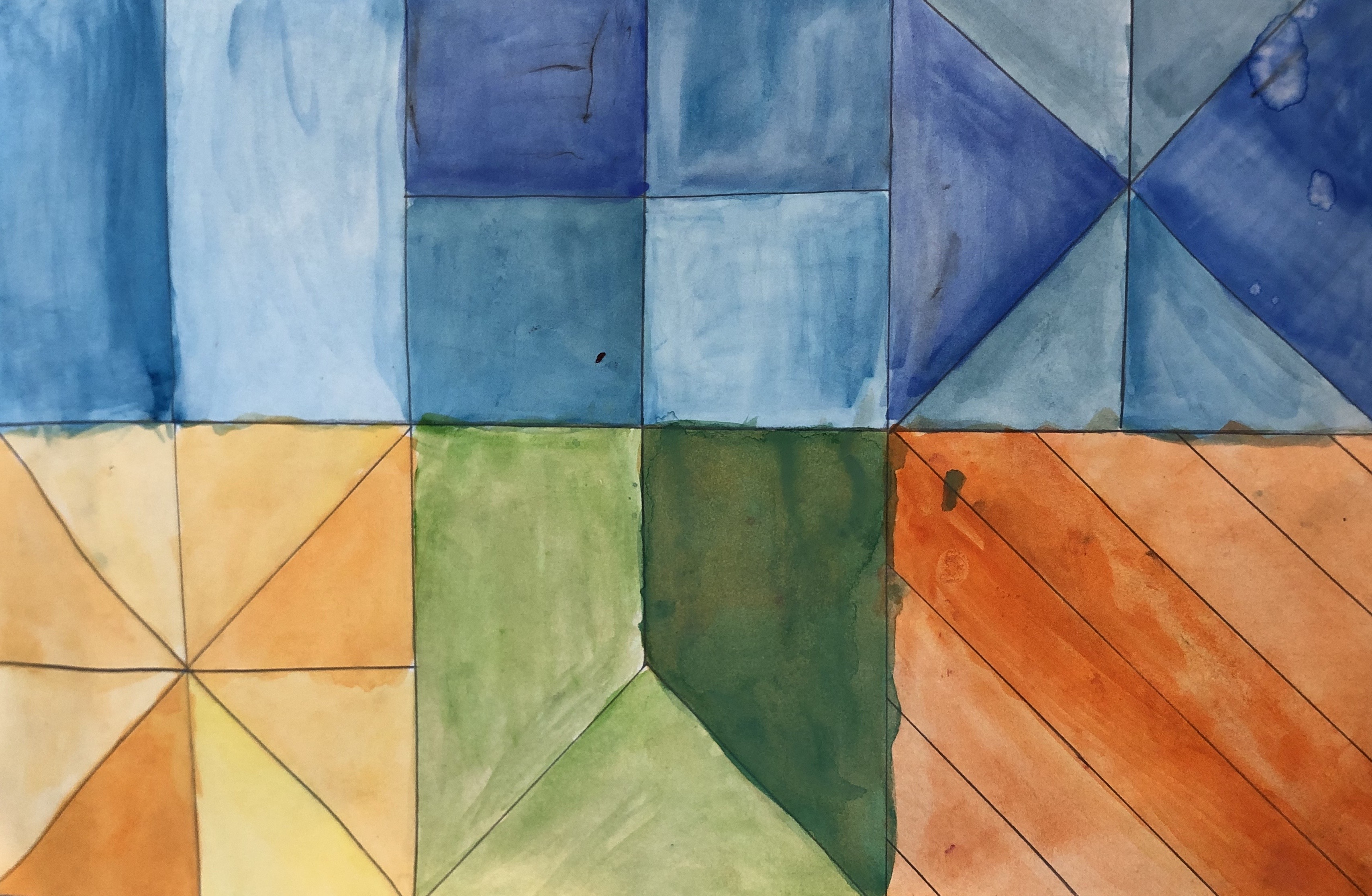 Students used watercolors to paint their section. After learning about the Element of Art Value, students added layers of watercolor to create various tints and shades.