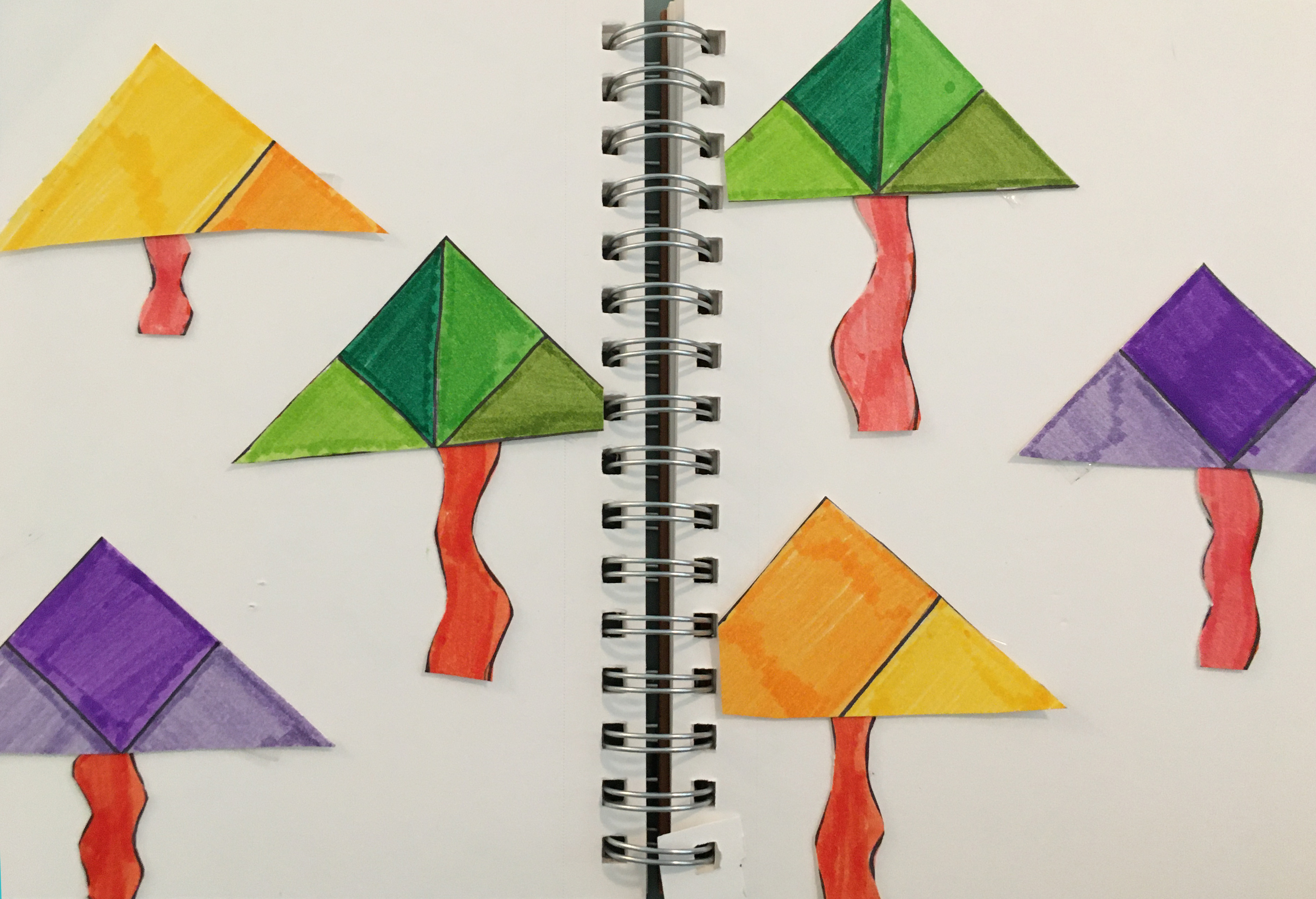 As a class, students were lead through dividing up a 12×18 paper. First, students divided the whole page into six equal squares. Then, students divided up each square into smaller sections.