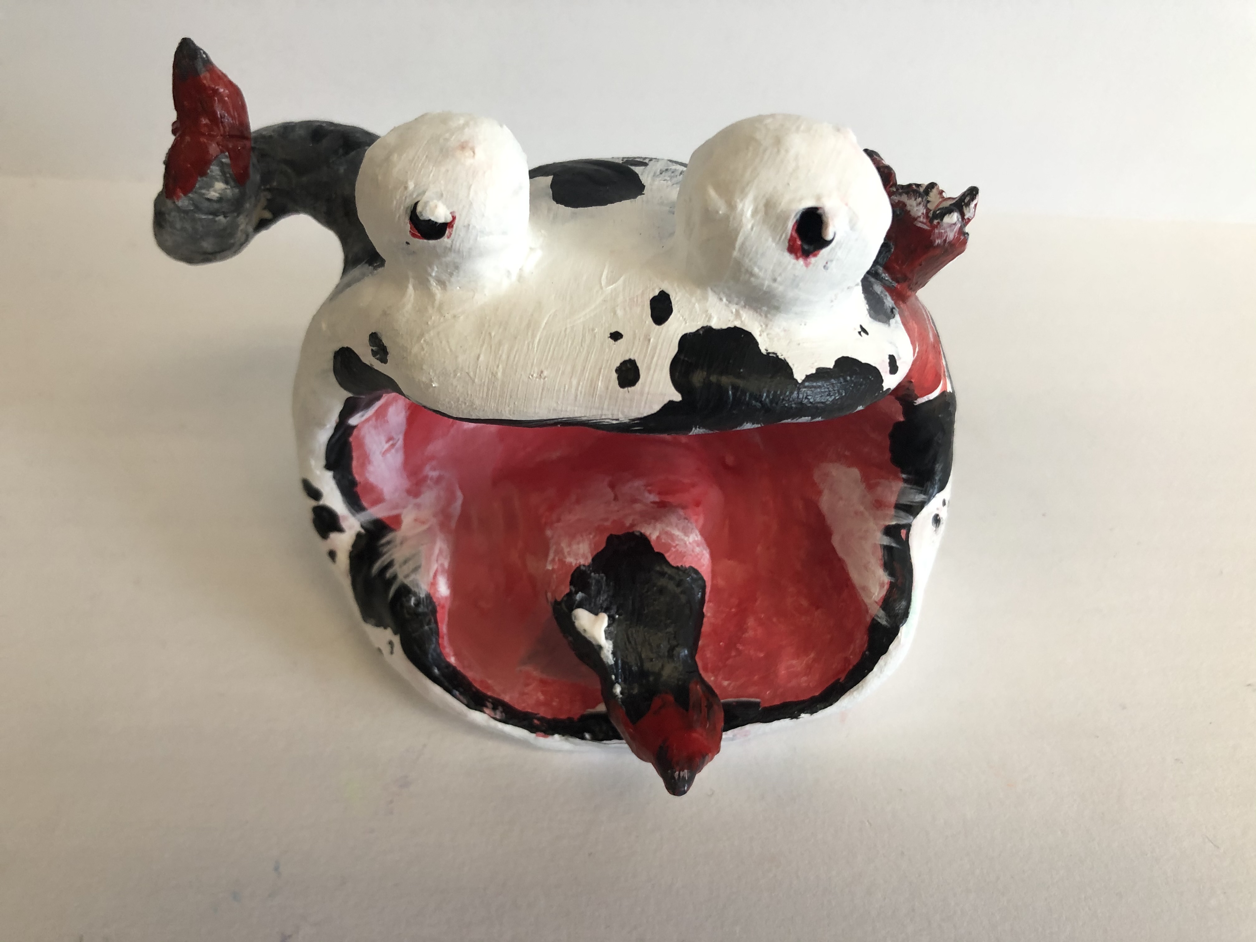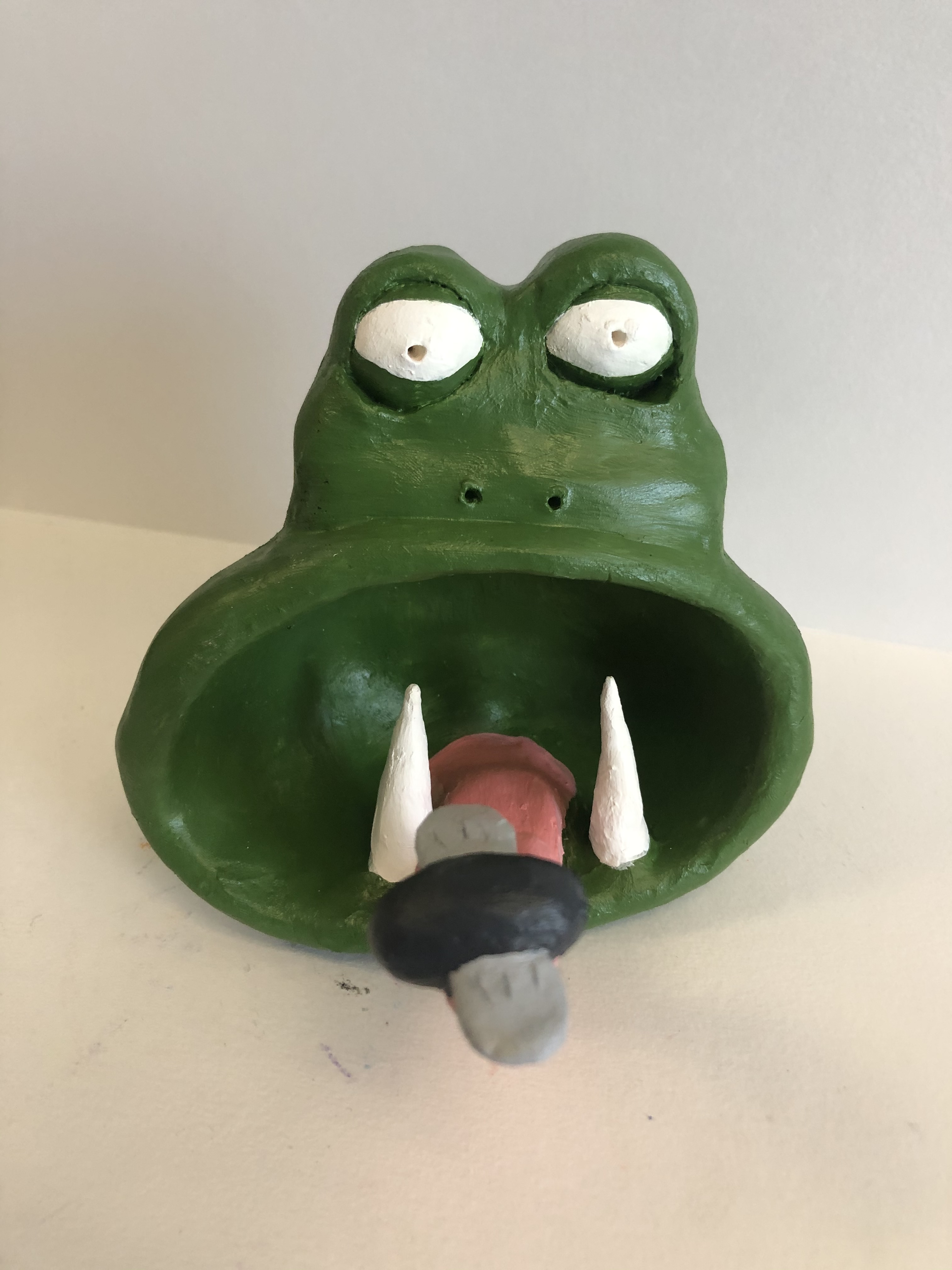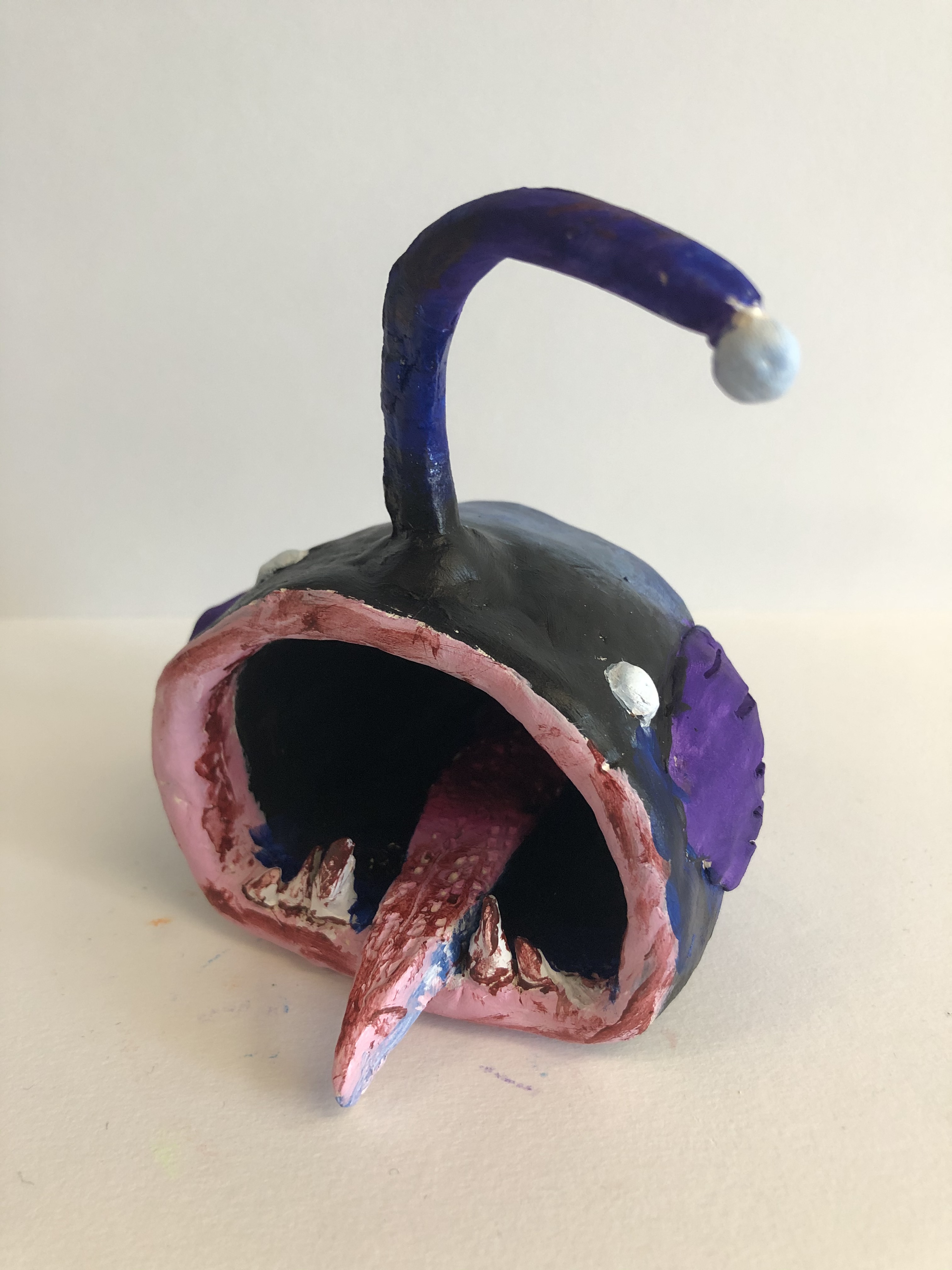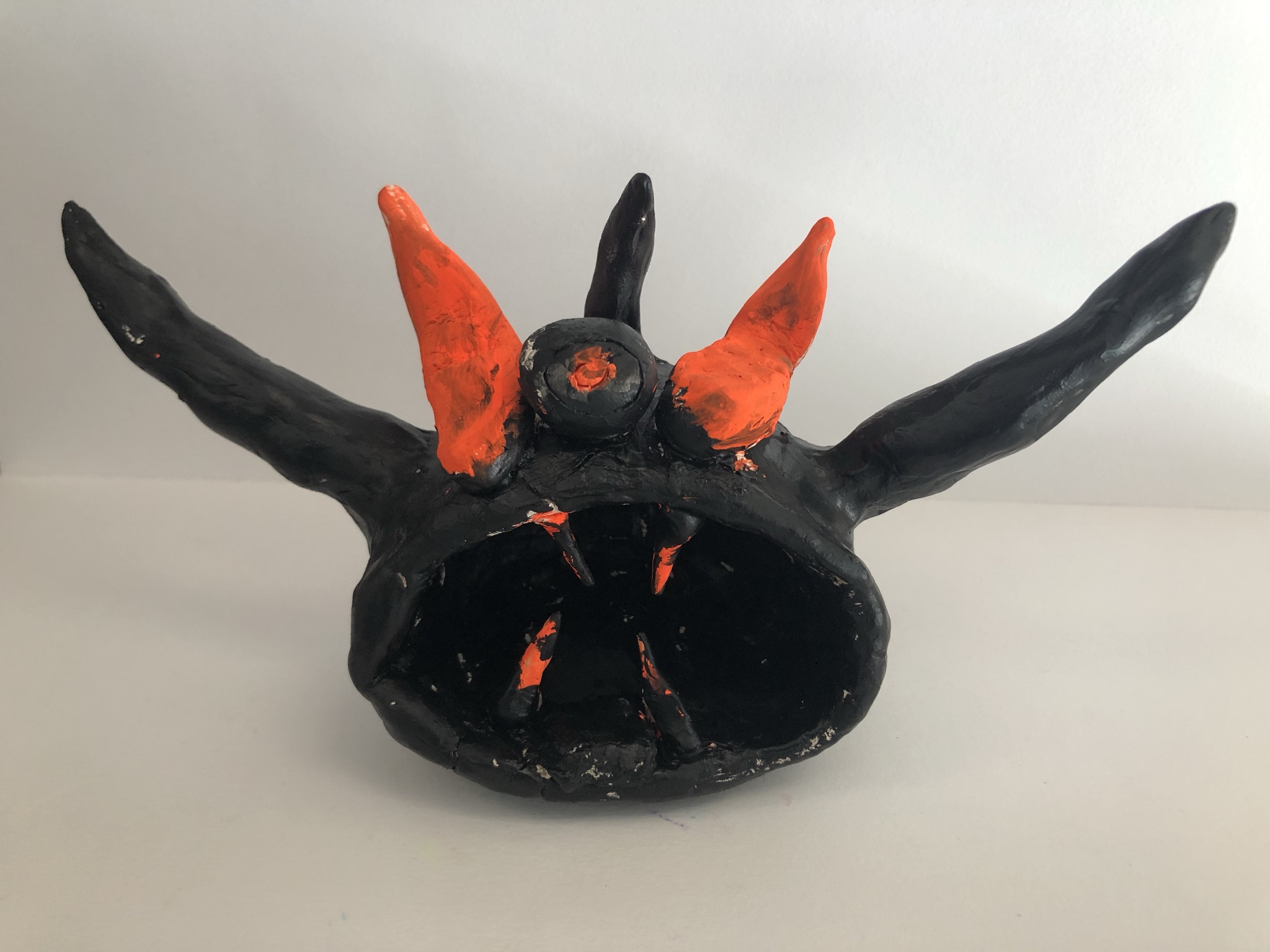 Students learned the basics of Ceramics including the stages of clay and the full ceramics process. Students wedged their clay, then learned how to create a pinch pot. After making their project base, students learned about slabs and coils, two other clay hand-building methods. Students learned the importance of scoring and slipping their attachments, then began adding details to their creatures. Students were required to add at least three features on their monster.