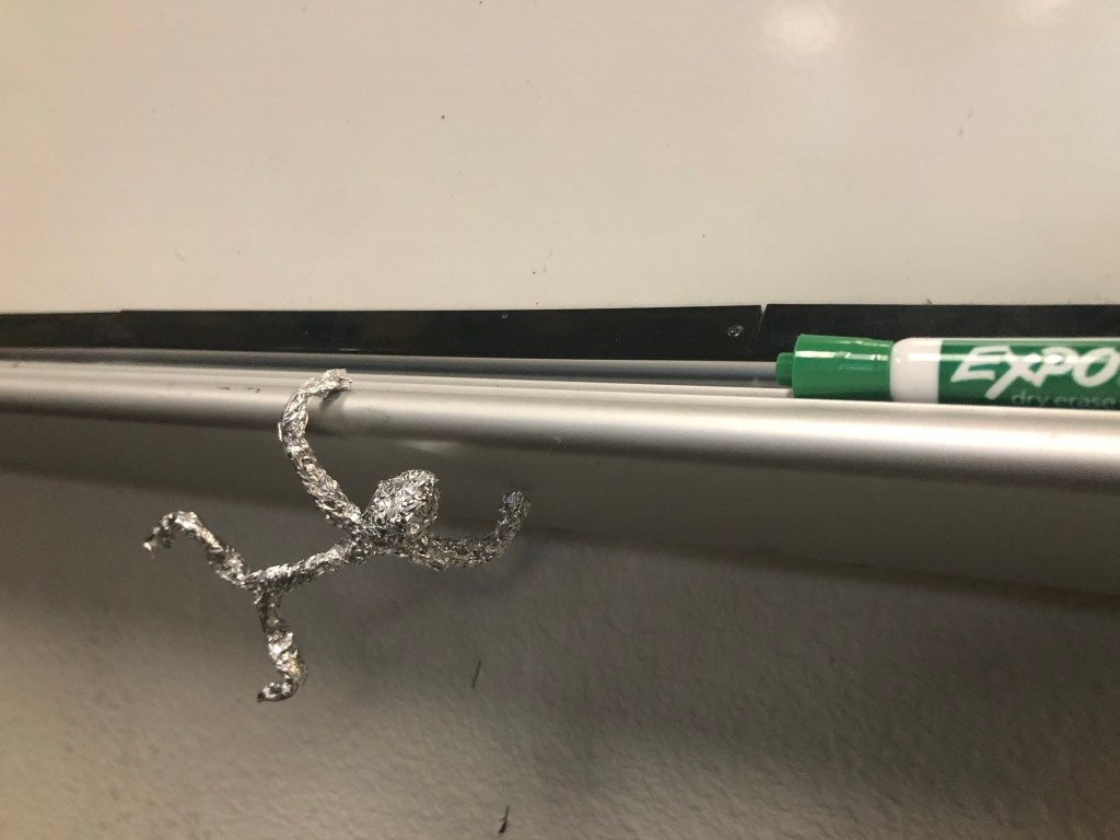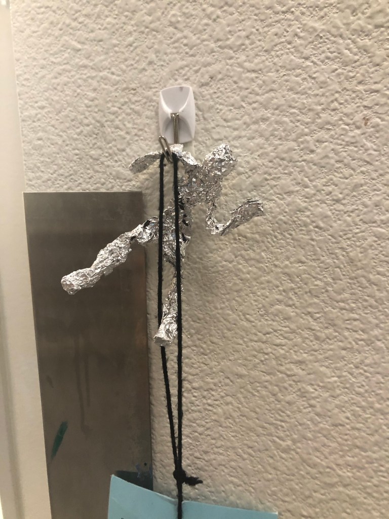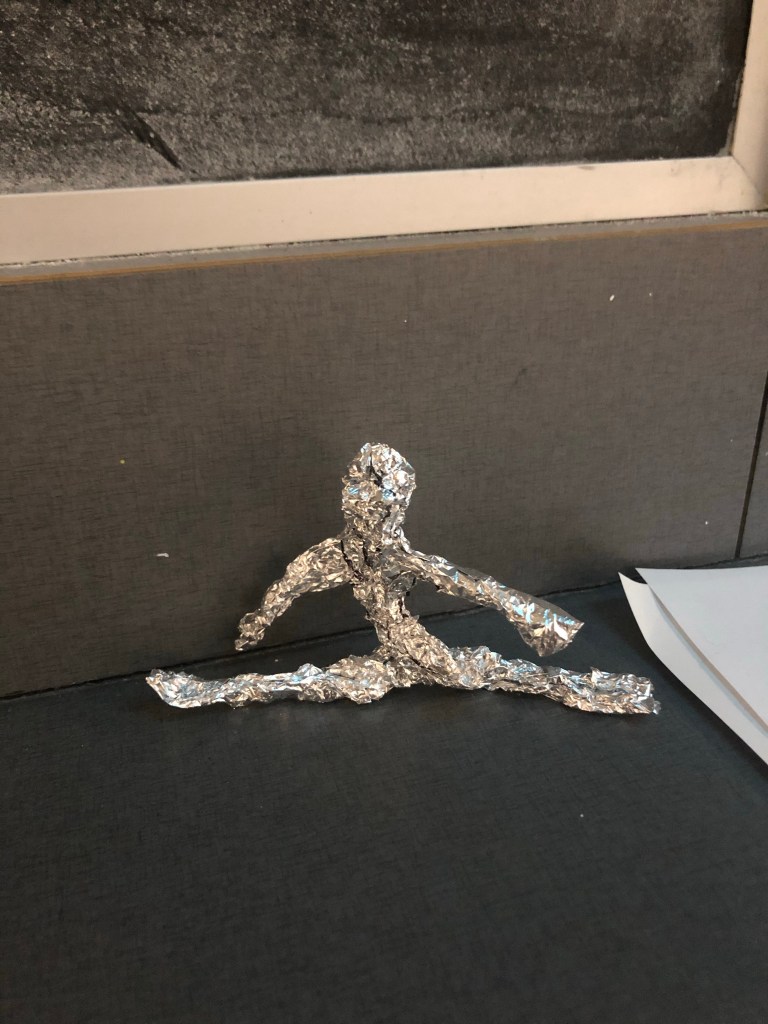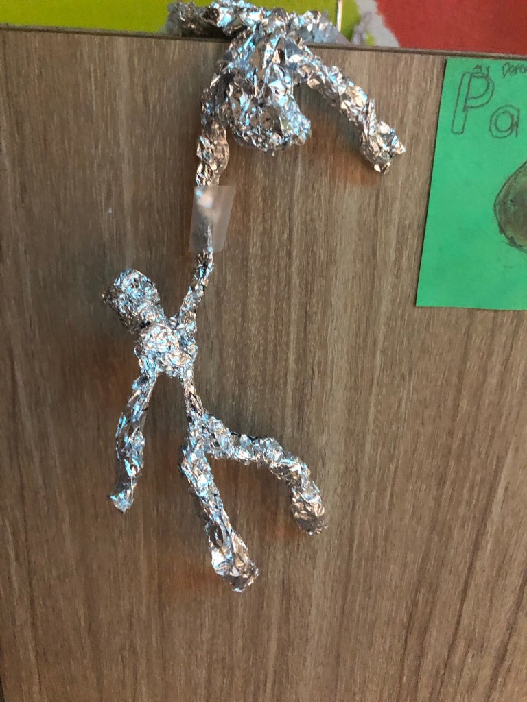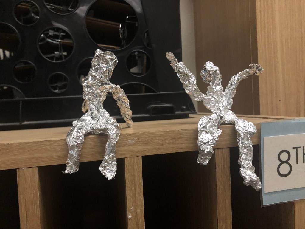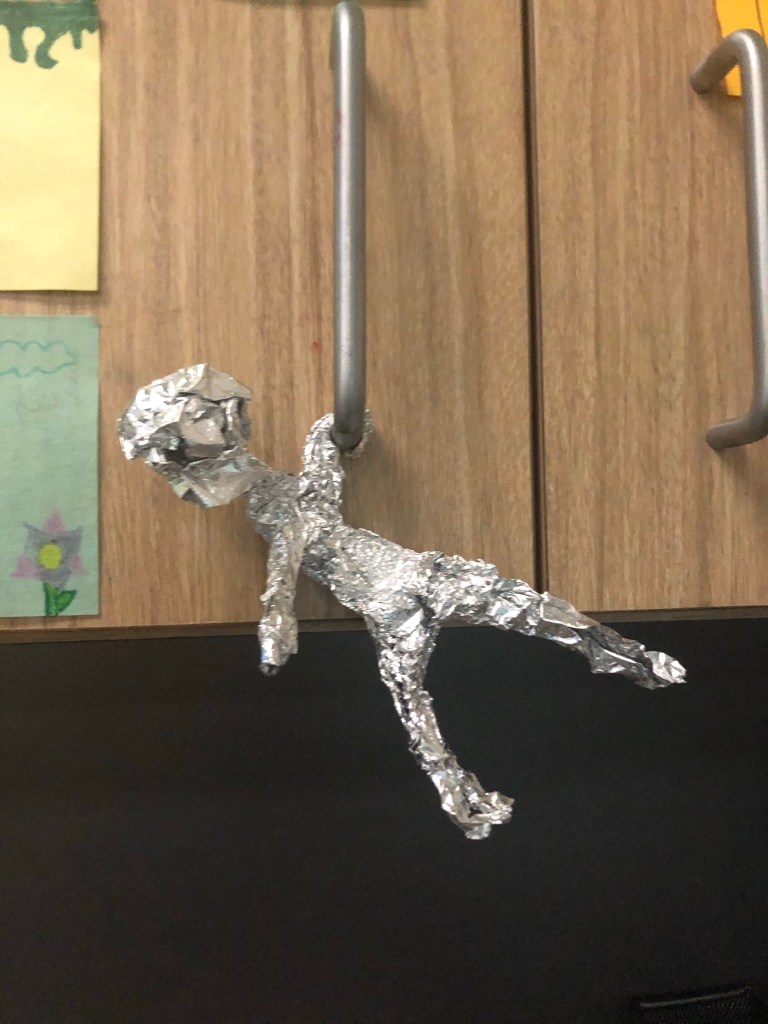 Before the main project, students were introduced to form using a mini-lesson. Students created foil figures to learn about taking a two-dimensional object (stick figures) and making them three-dimensional form (foil figure). After creating their figures, students were allowed to place their figures around the classroom.
