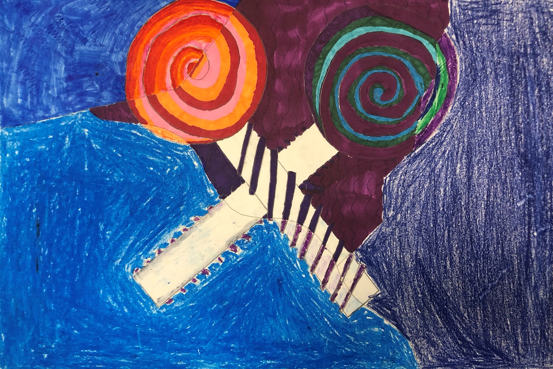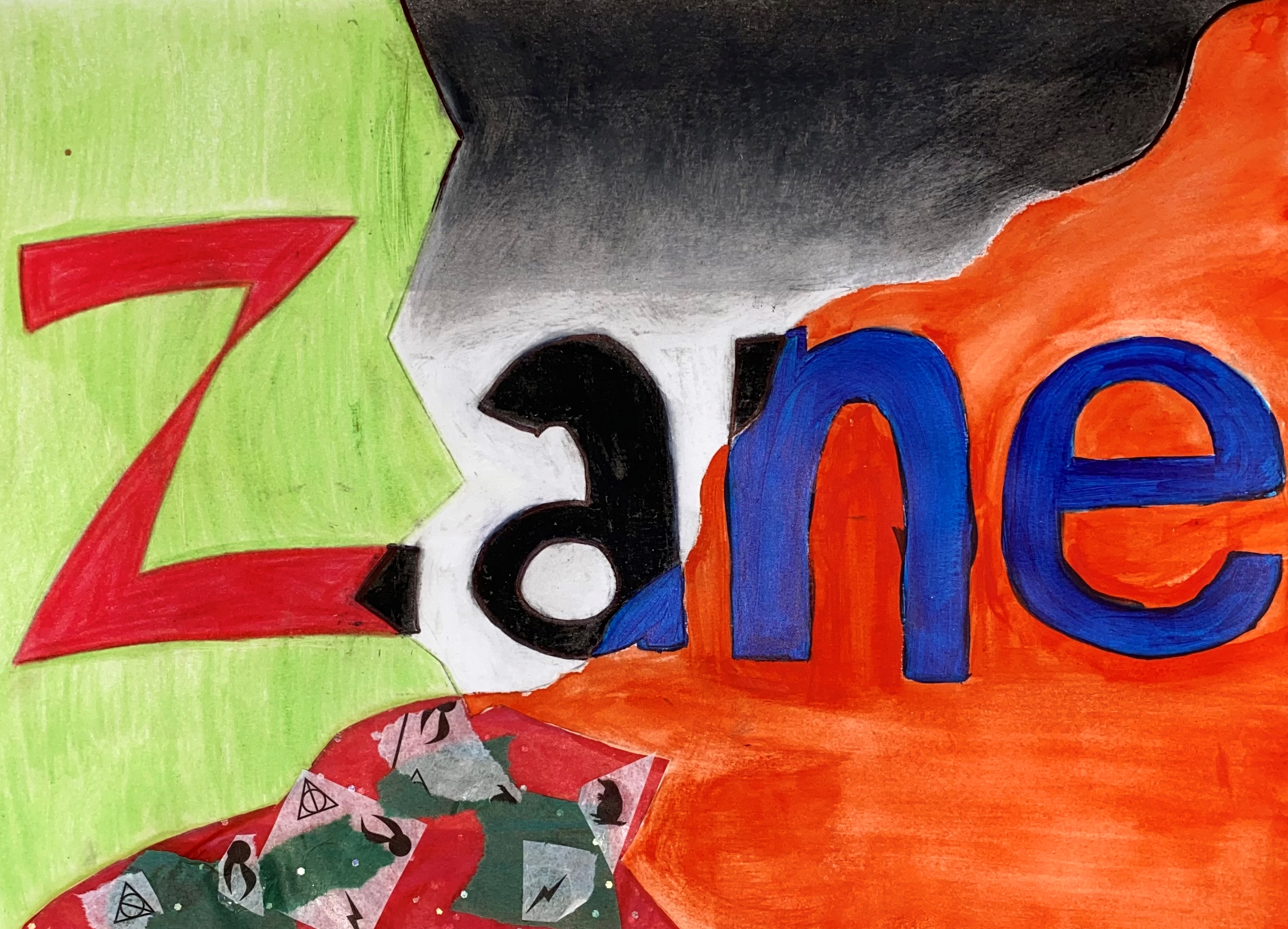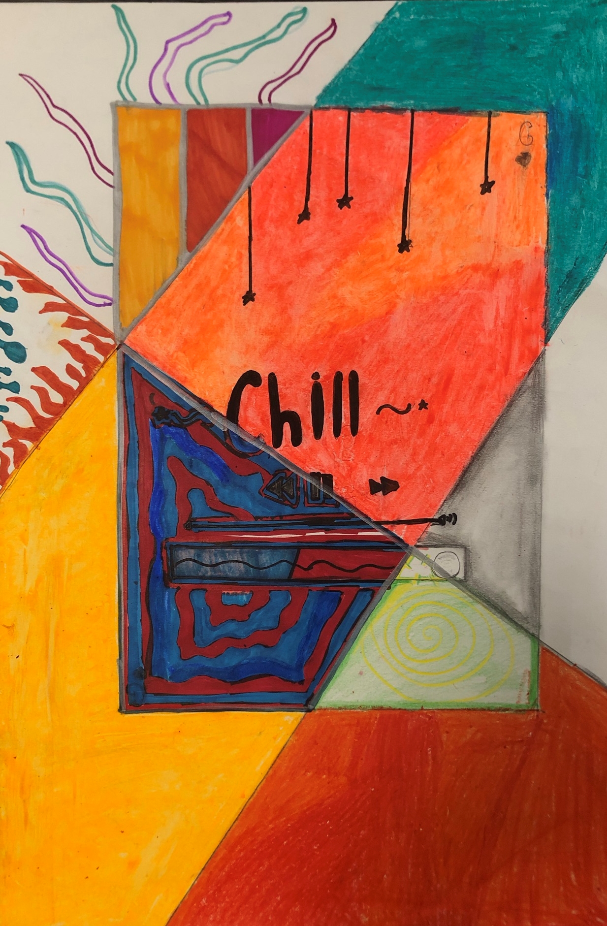 As one of their final projects for the year, students were tasked with creating a mixed-media project. Students picked and animal, object, or person to draw for the subject of their artwork. Then, students were required to divide their project into at least four sections. This was because students were asked to use at least four materials in their work.