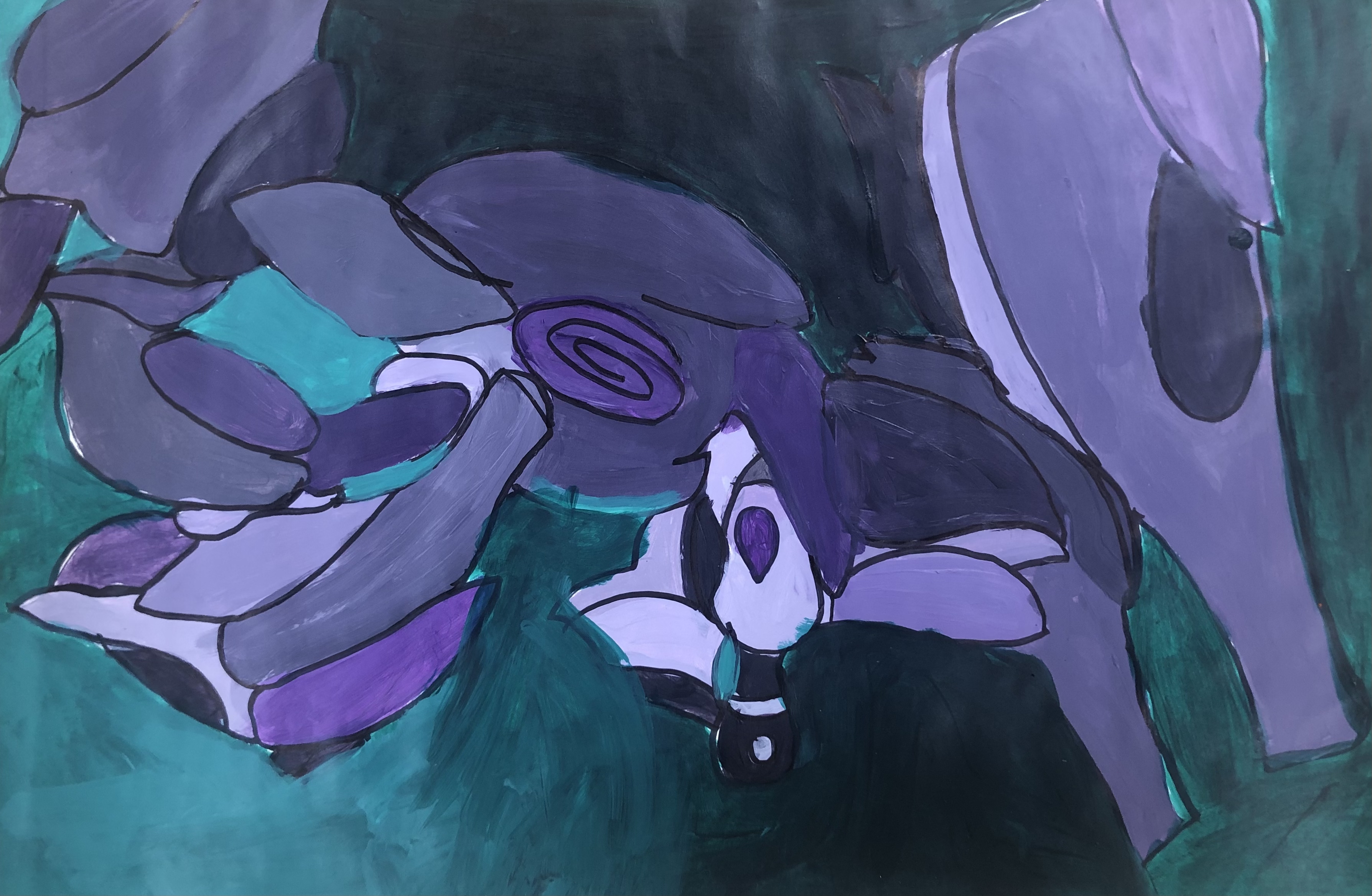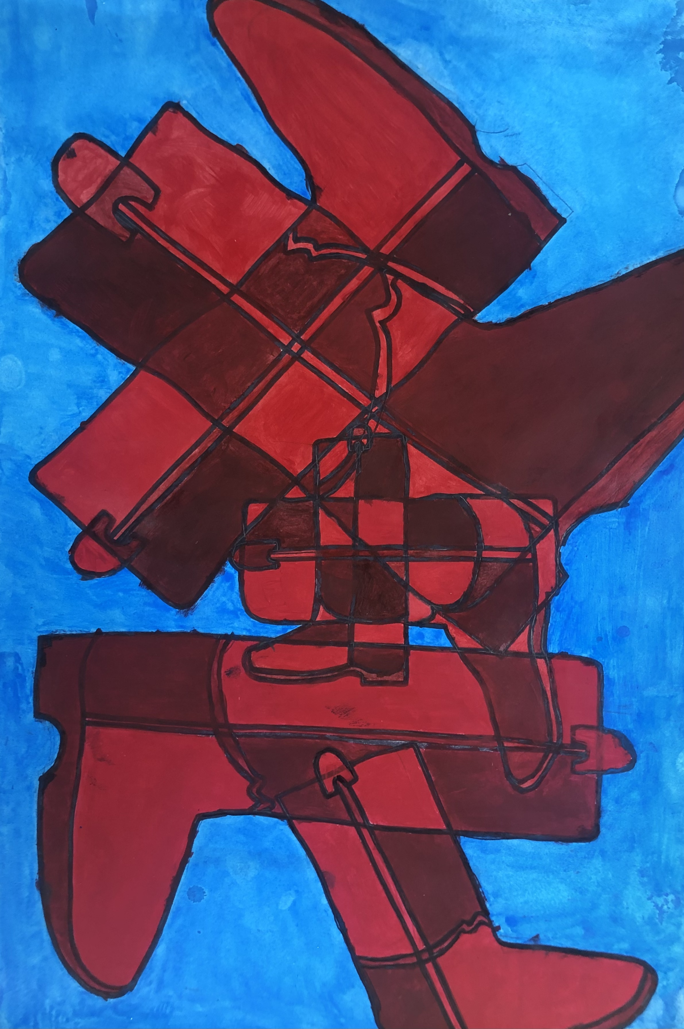 Students selected an object of their choice to draw from observation. They were required to fill their page, overlapping objects and running some off the page. After creating their composition, students chose a color to paint their project with. This project reviewed shape and space as students drew their objects. Students selected a color for their project, then used tints and shades (value) to paint their objects.
