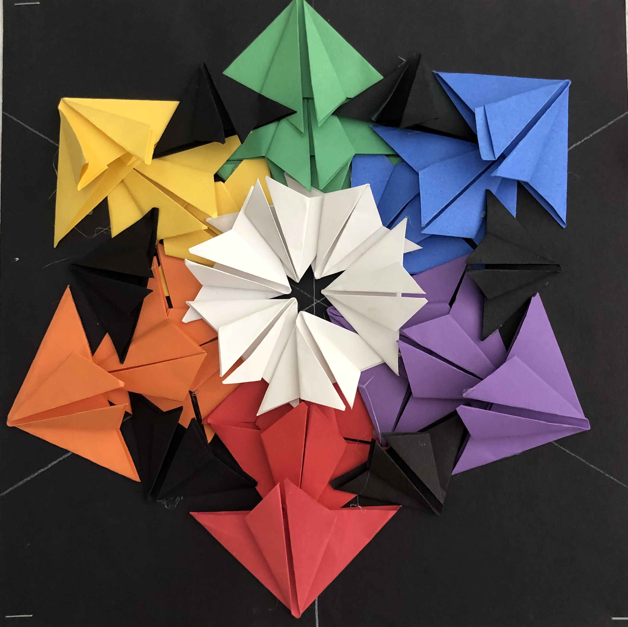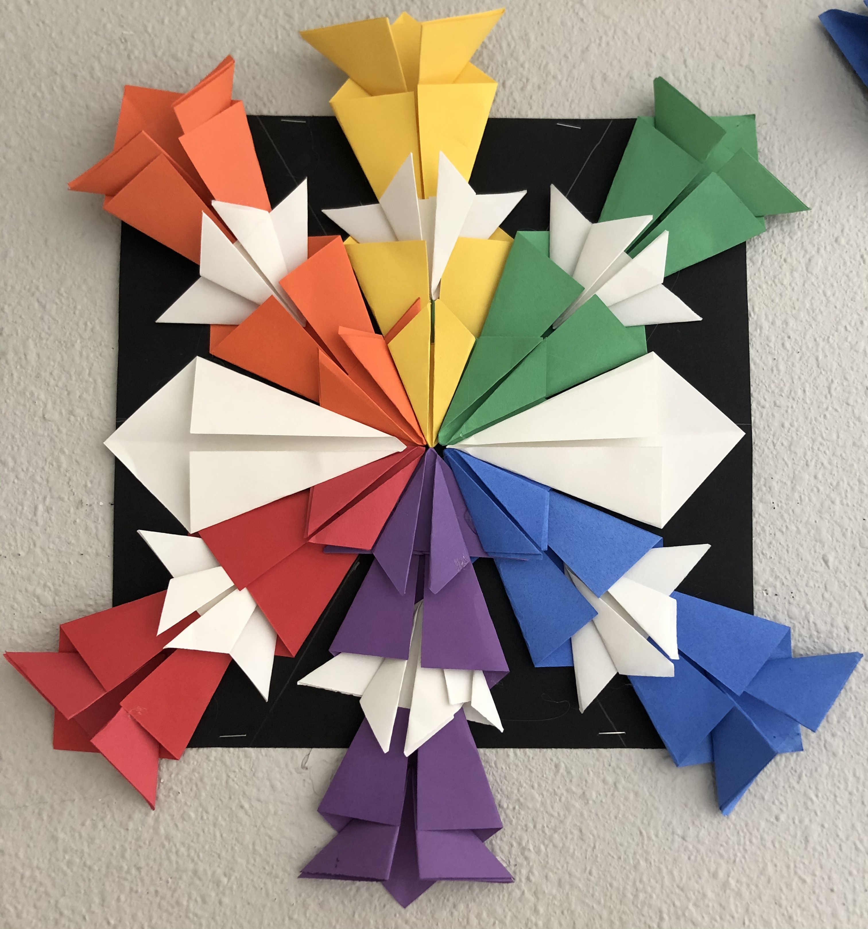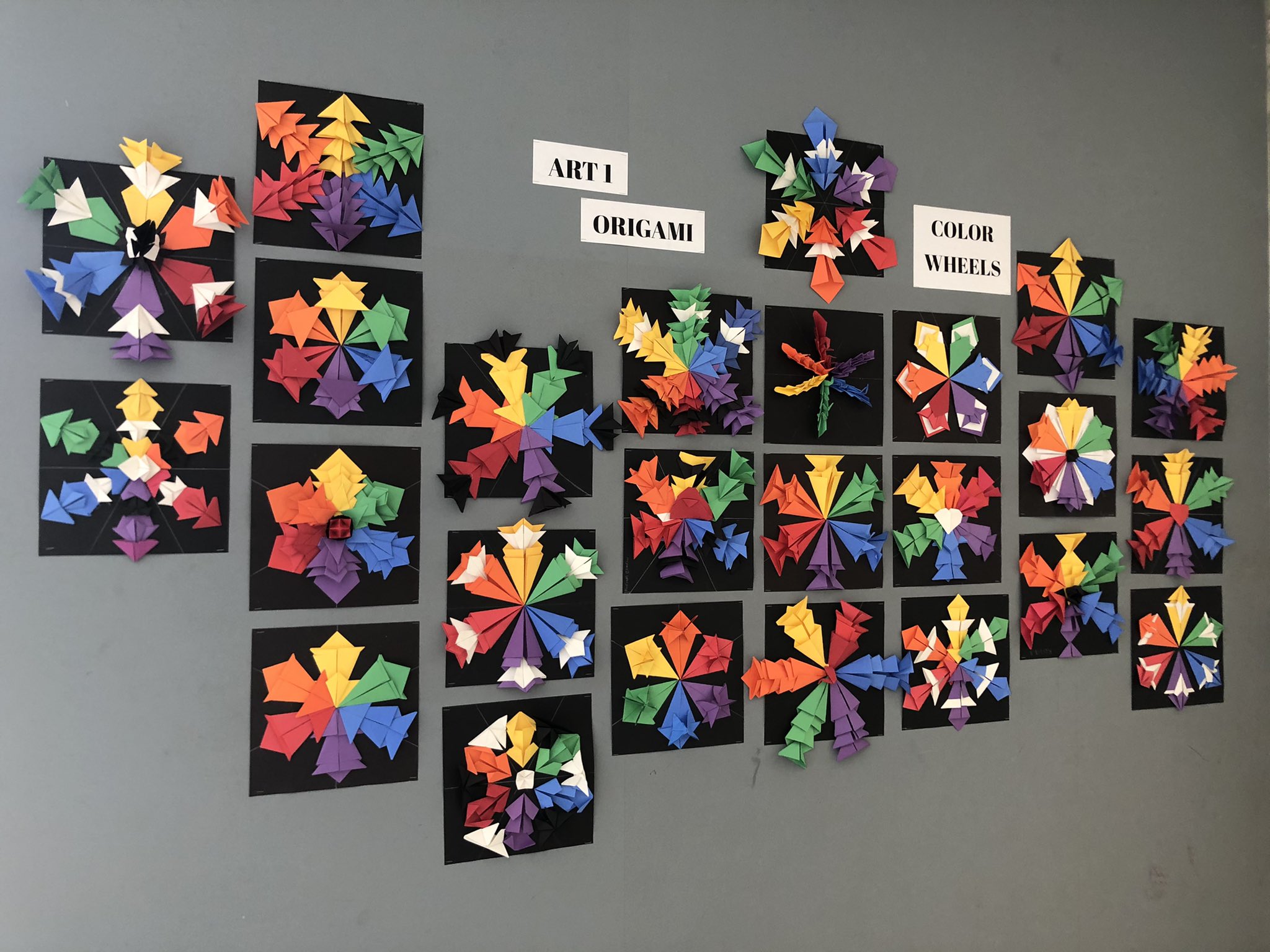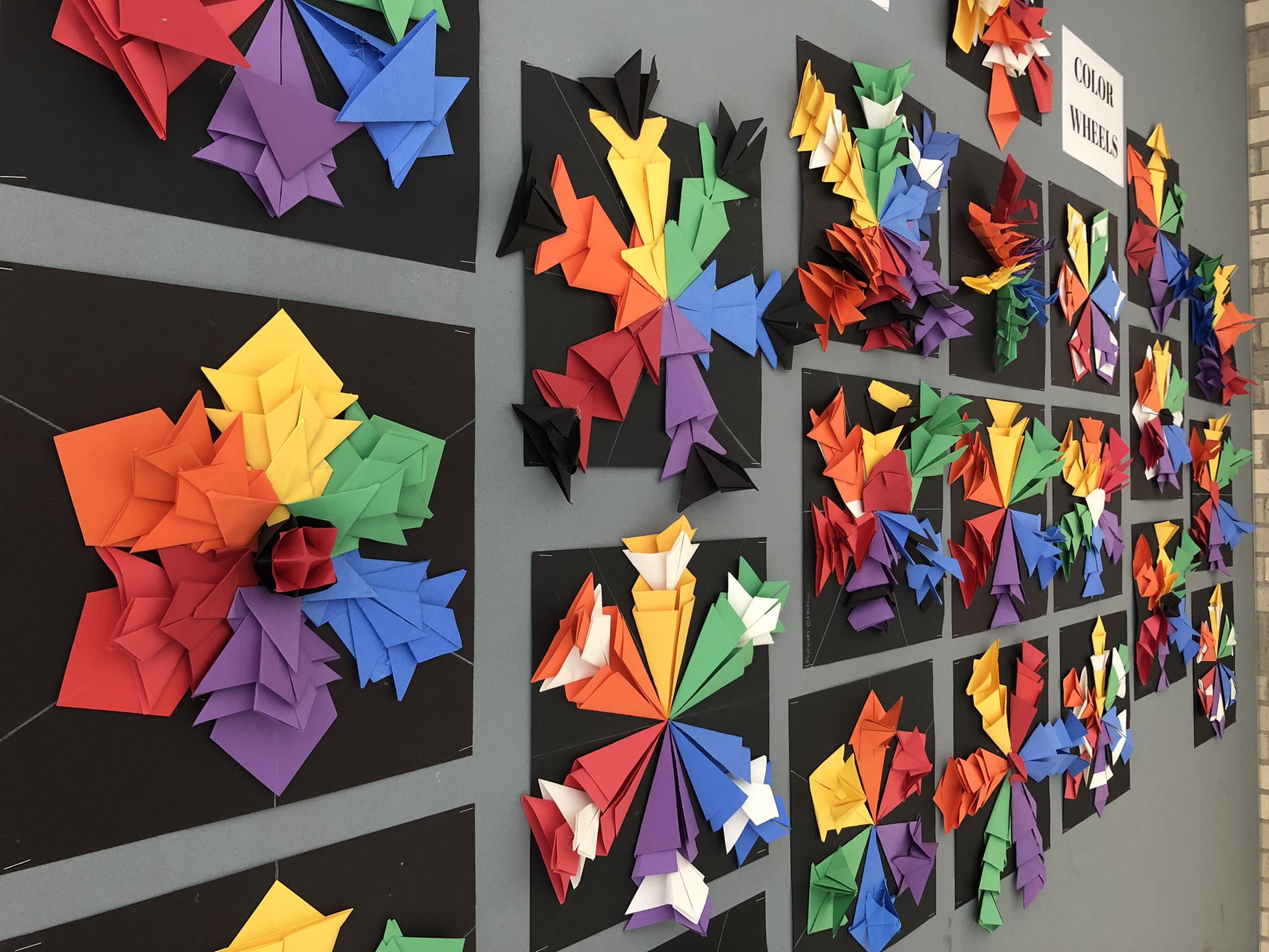 As a class, students were taught how to measure using a ruler to create equal spacing for their origami color wheels.
