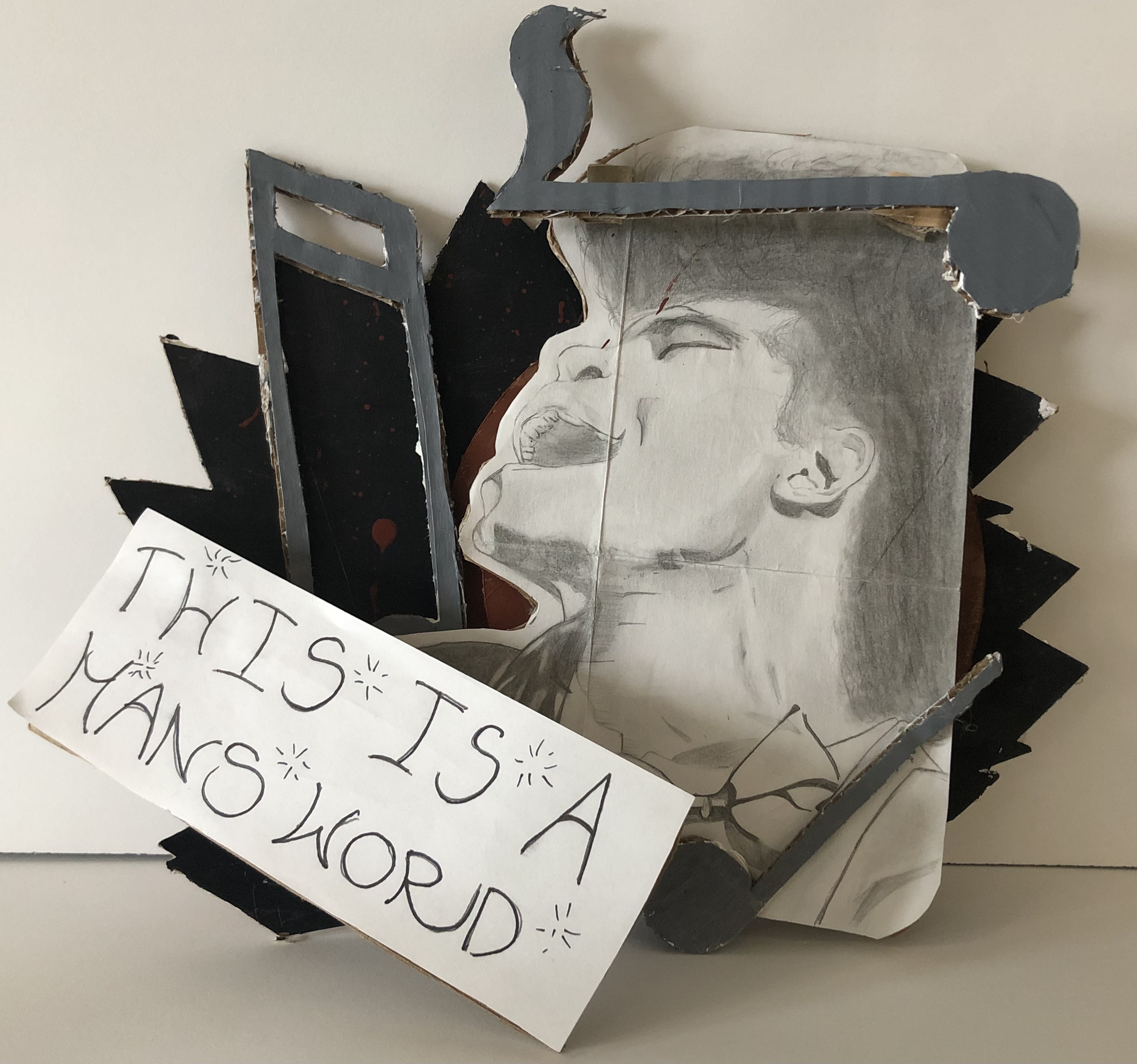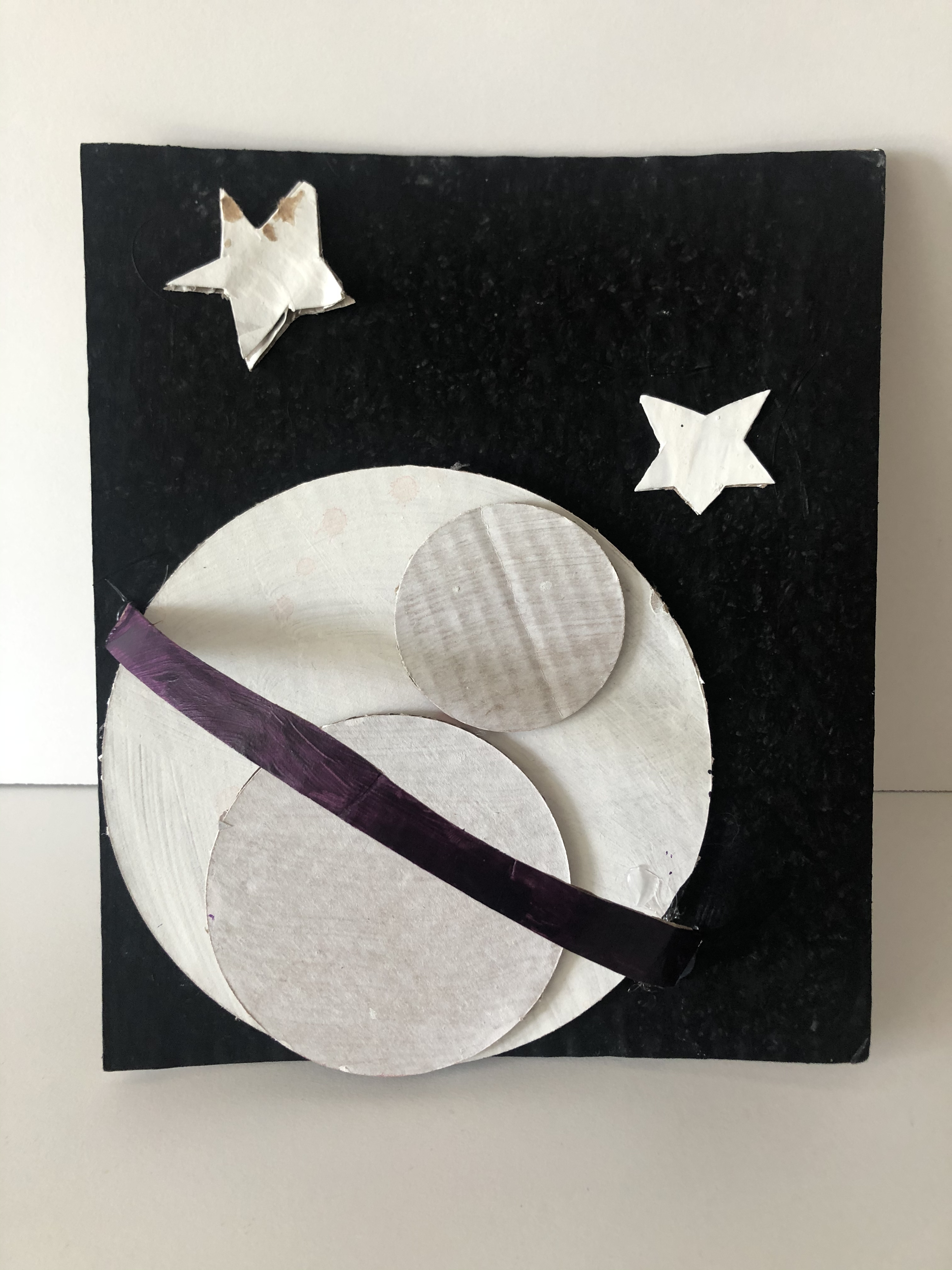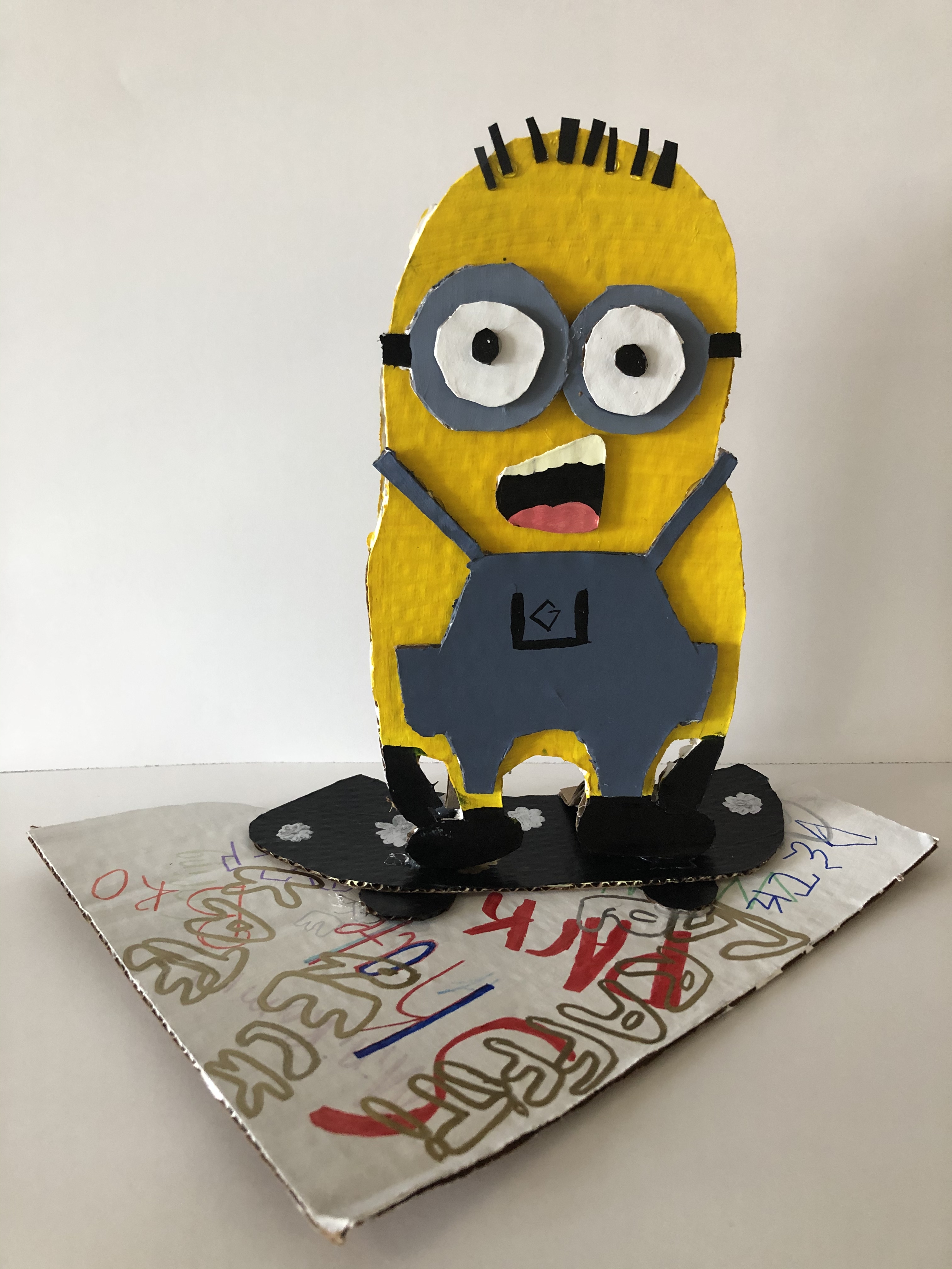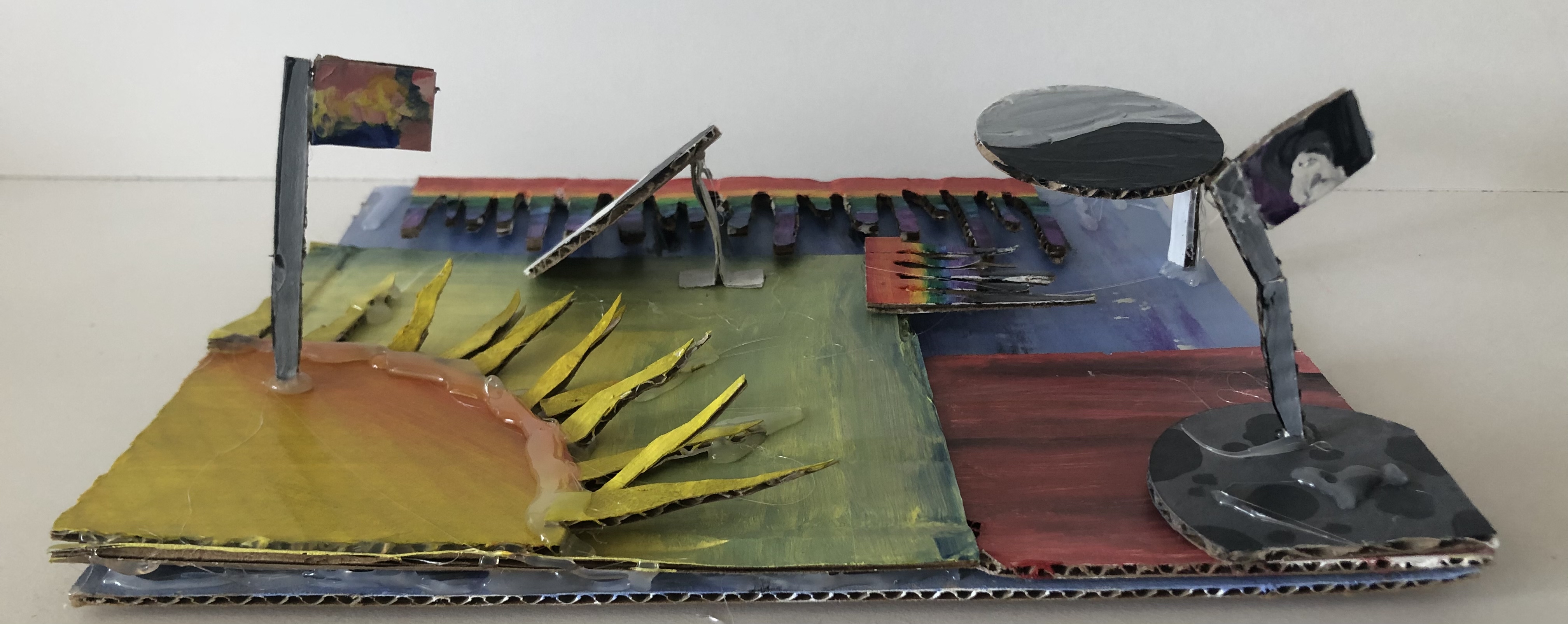 Students learned about Narrative Art and how artists use their work to tell stories. As a review of the elements of art shape and form, students planned a relief sculpture made of cardboard. After designing their sculpture through sketches, students began creating the individual pieces for their sculpture. Students gessoed their pieces once they were done, then painted or colored their pieces to match their story.
