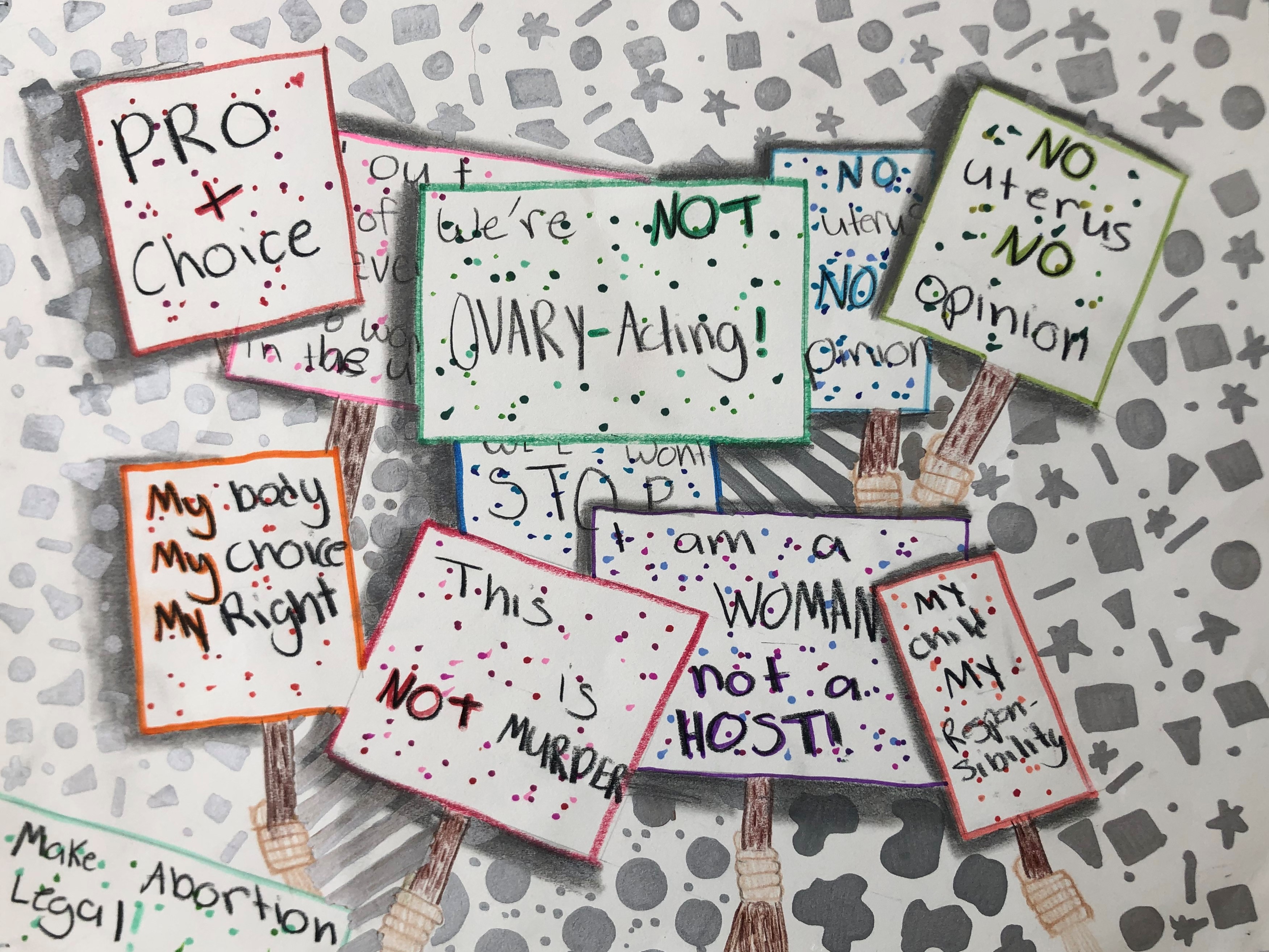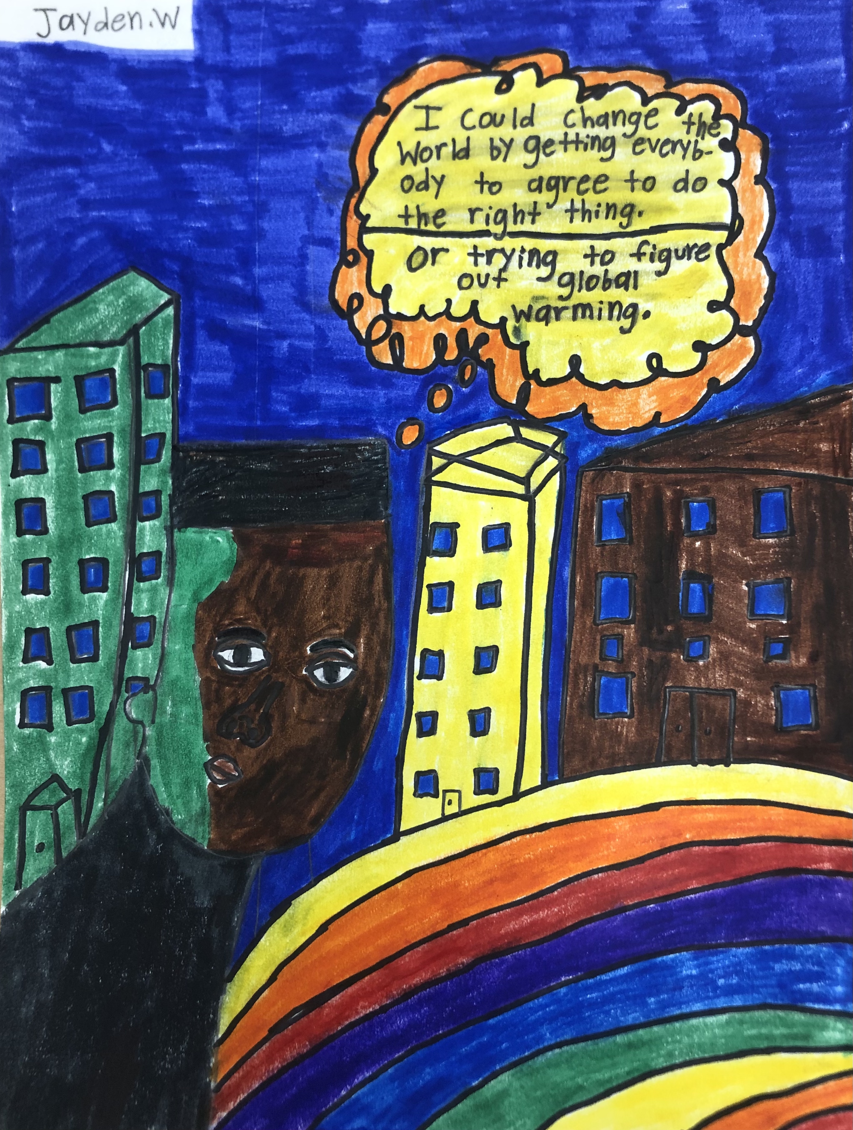 Students were asked to brainstorm ways that they would change the world. Their ideas could be something they could do immediately, or tackle larger issues they want to help change. Students were given choice of material for this project. After determining what idea they wanted to use in their work, students discussed plans for work as well as material selection with the teacher.