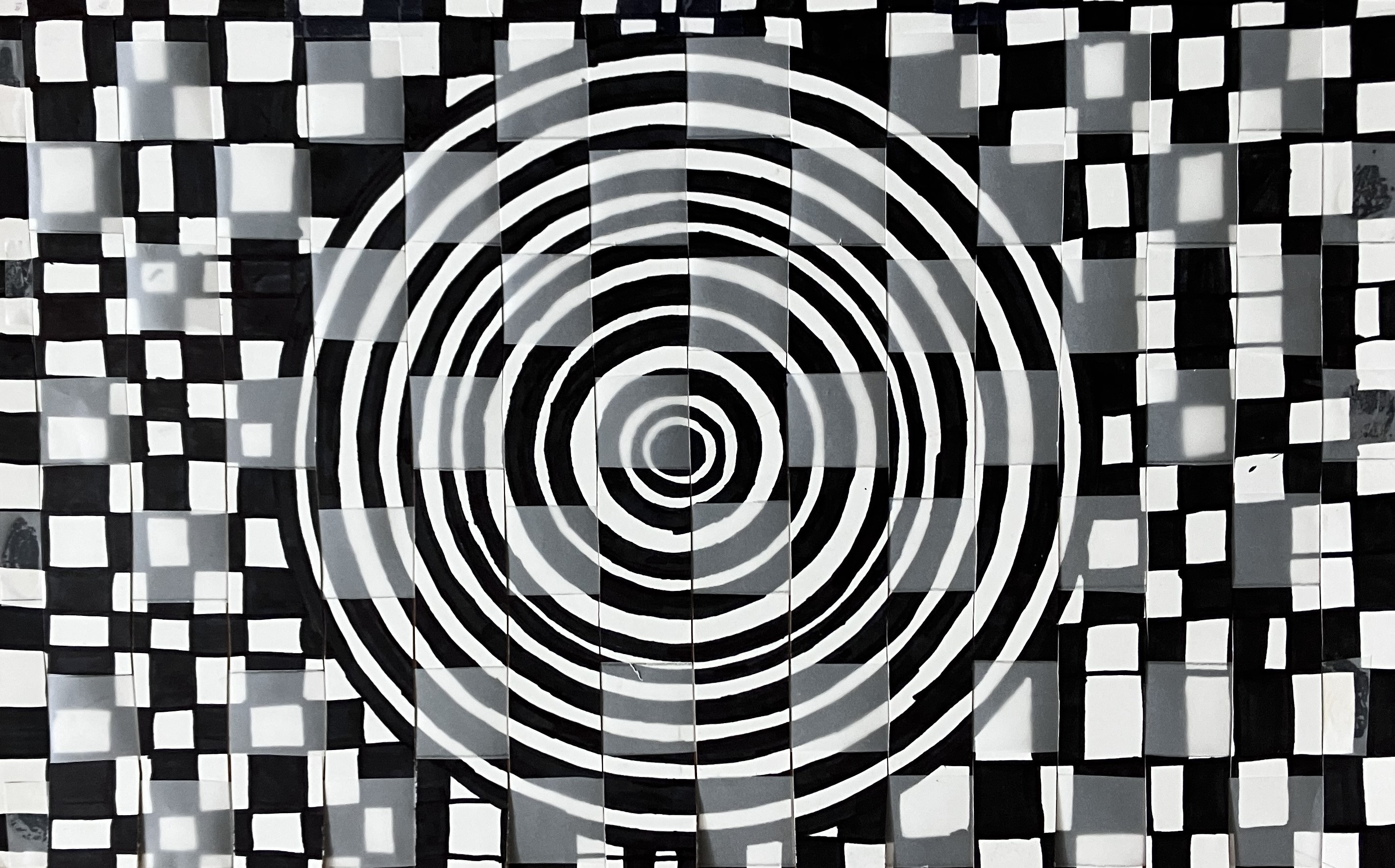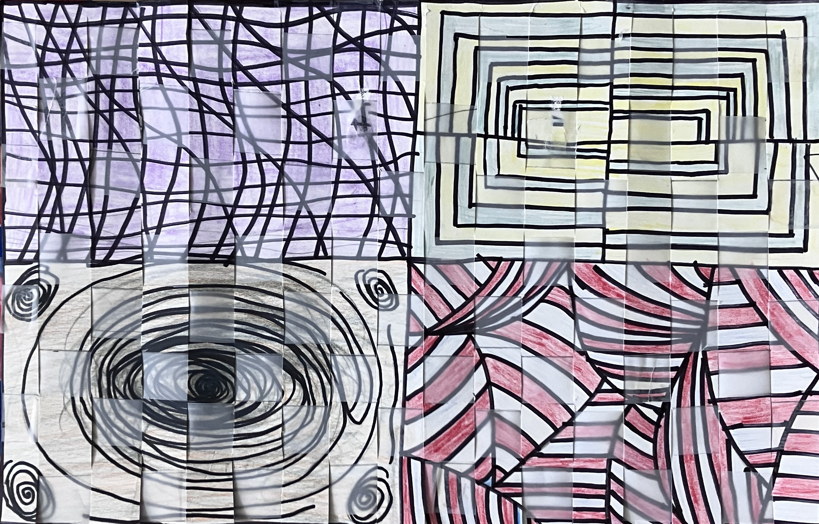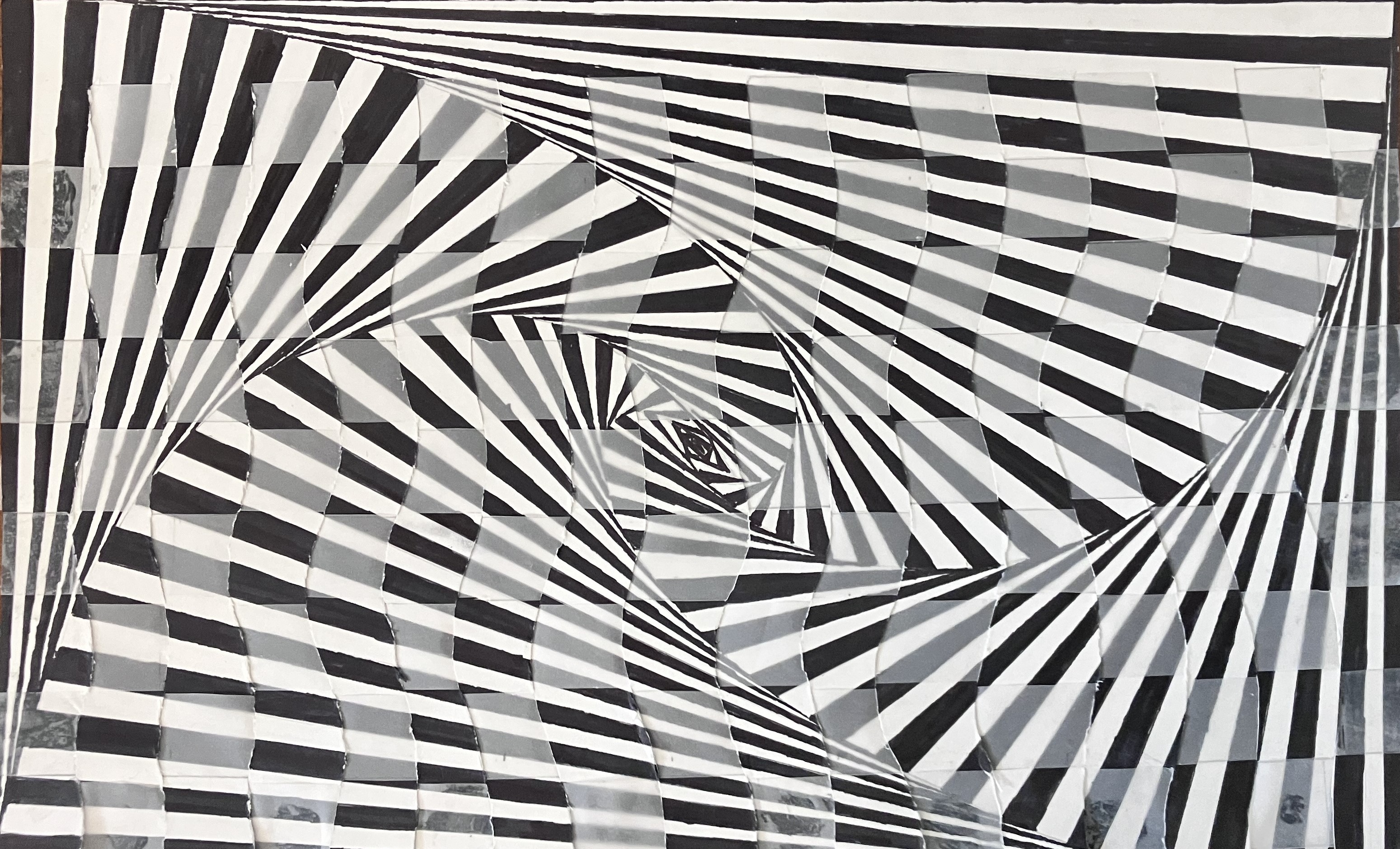 For this project, students learned about the art style of Op-Art. After selecting an Op-Art design for their work, students drew their compositions. Students could use ink, paint, or pencil to fill in their design.