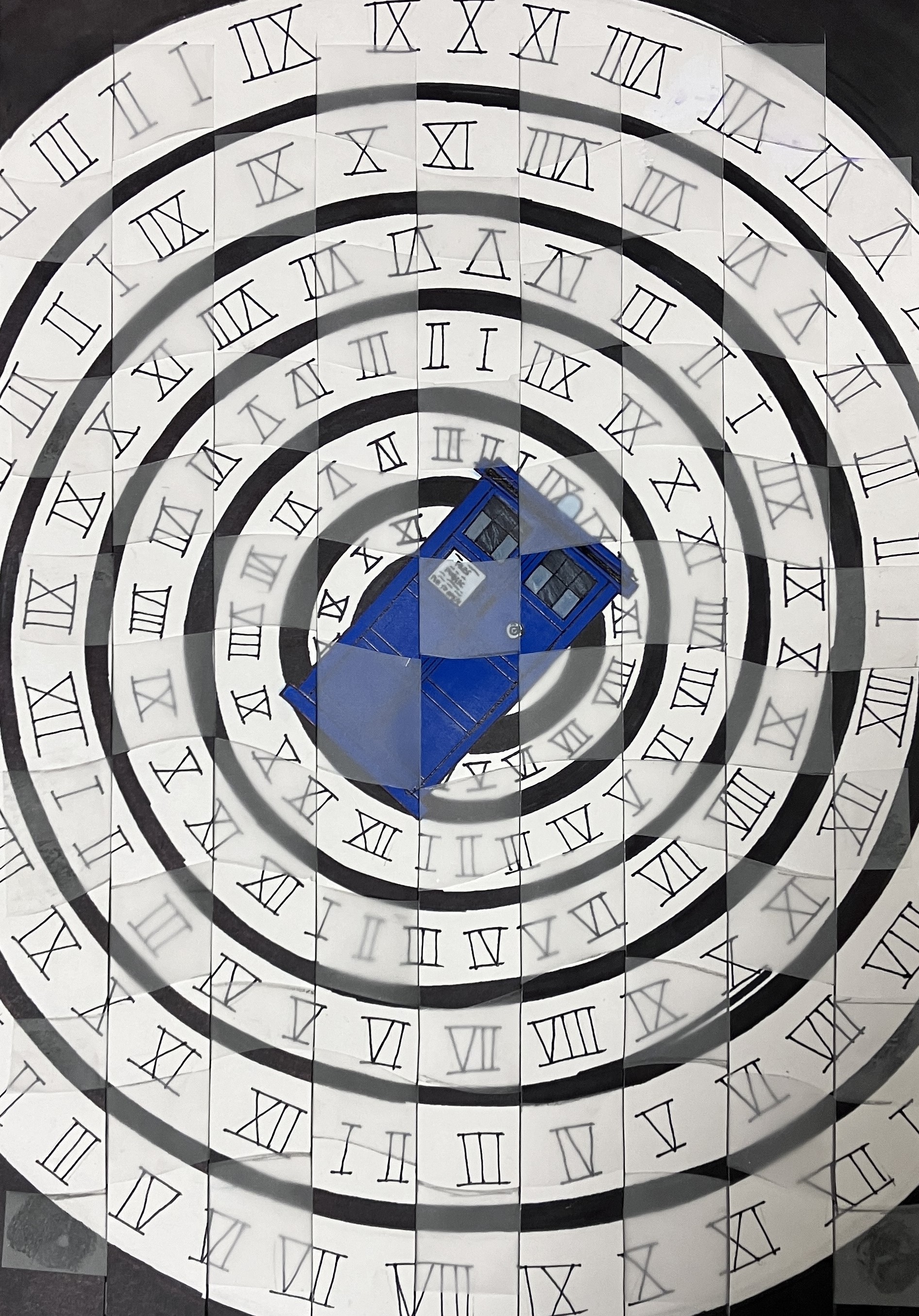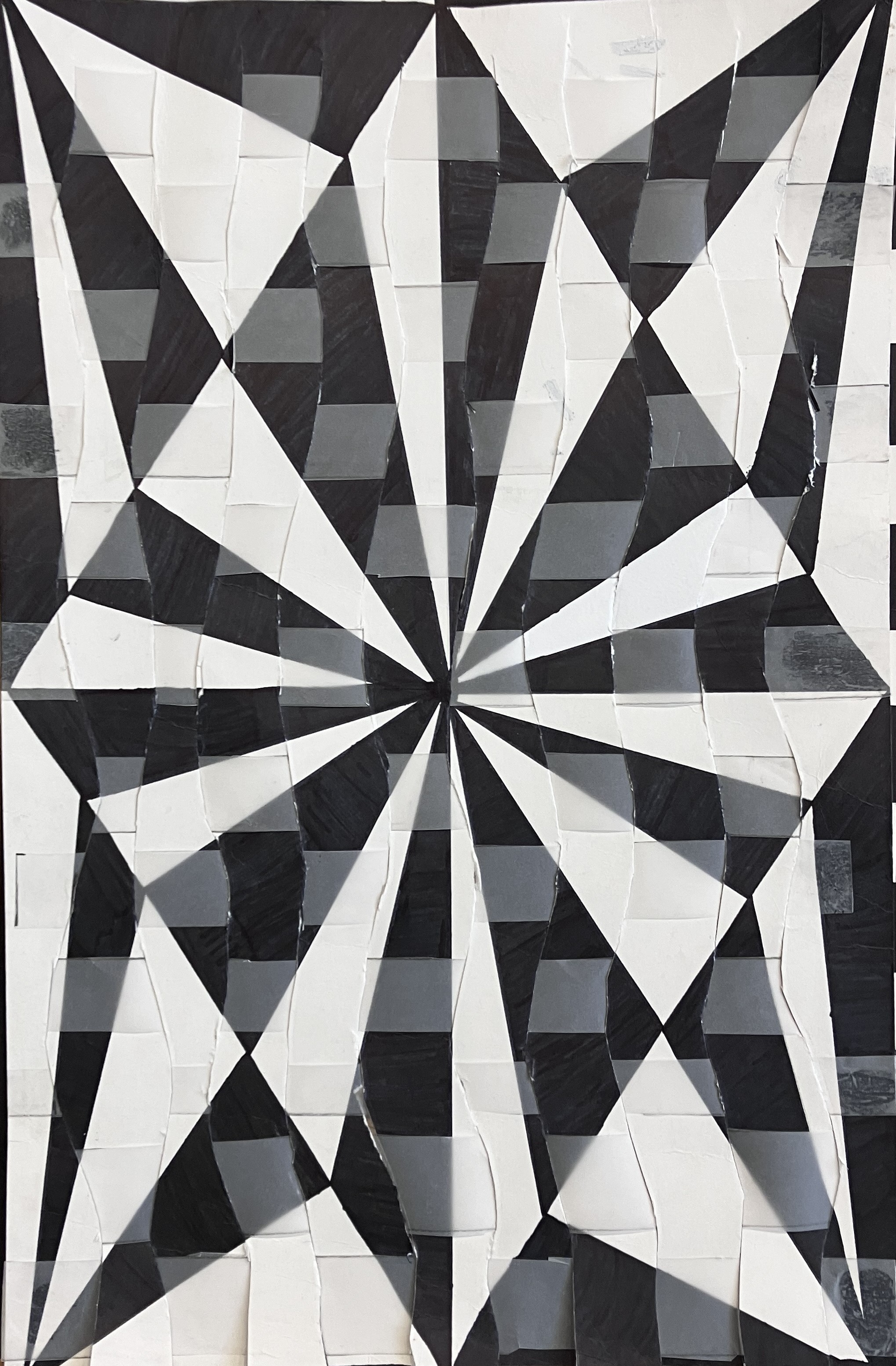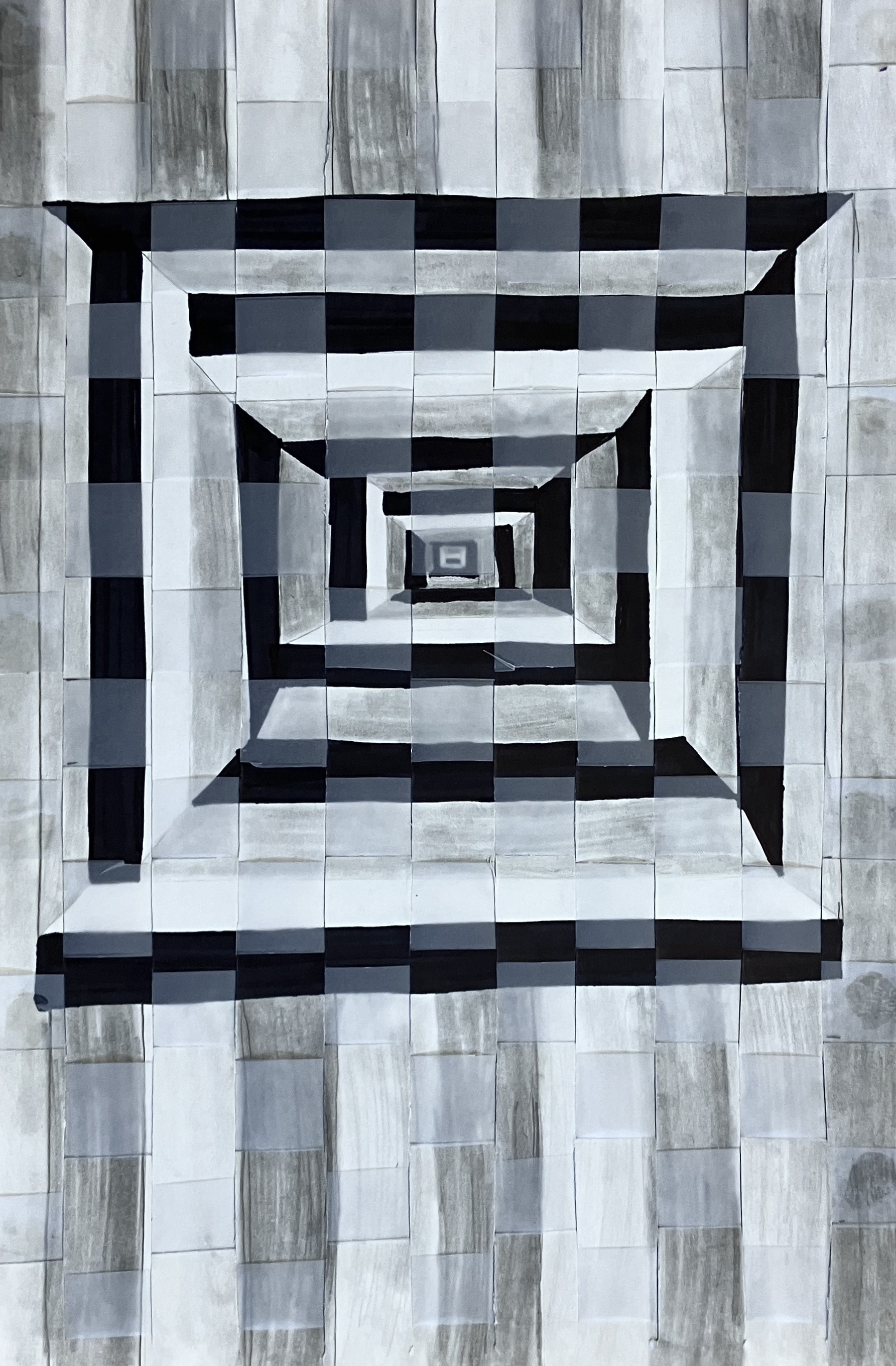 For this project, students learned about the art style of Op-Art. After selecting an Op-Art design for their work, students drew their compositions. Students could use ink, paint, or pencil to fill in their design.