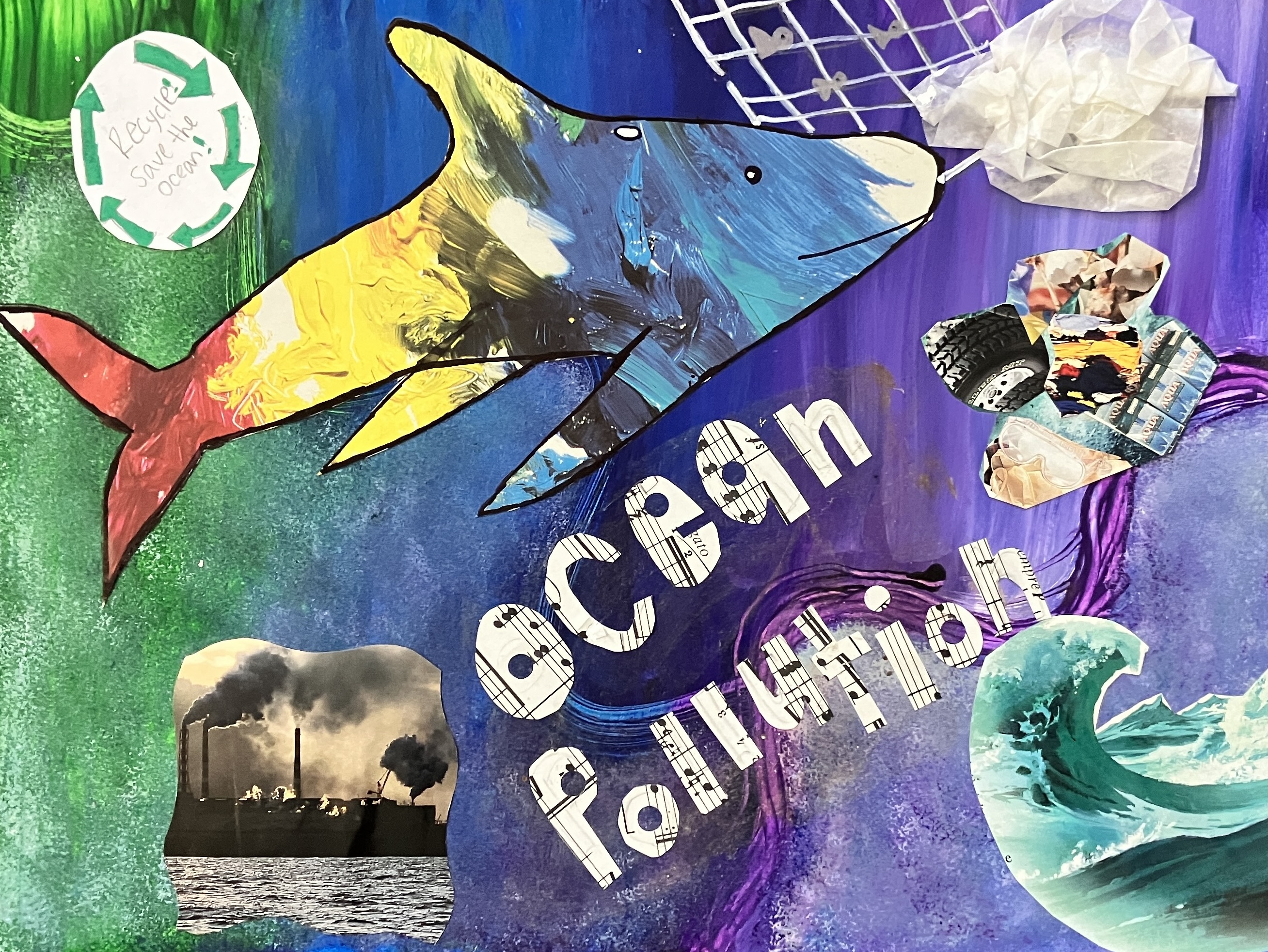 Students explored the concept of Social Issues through art. After viewing how artists use their work to spread messages, students selected a message of their own to share in their work.