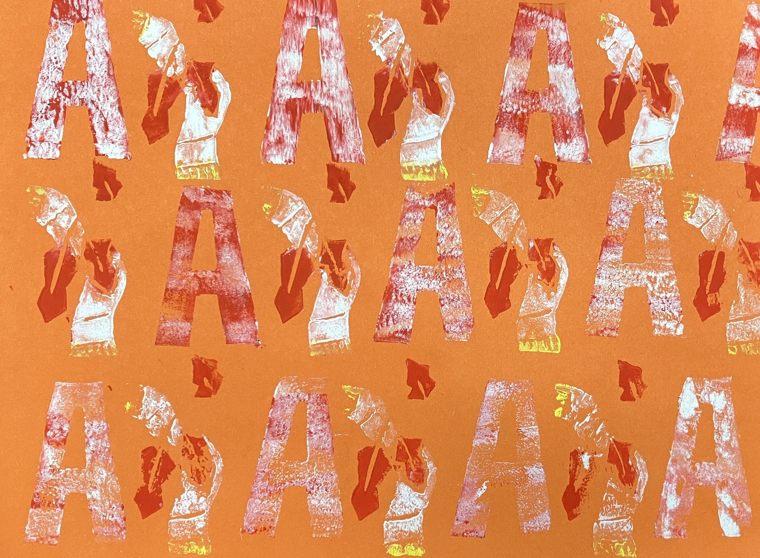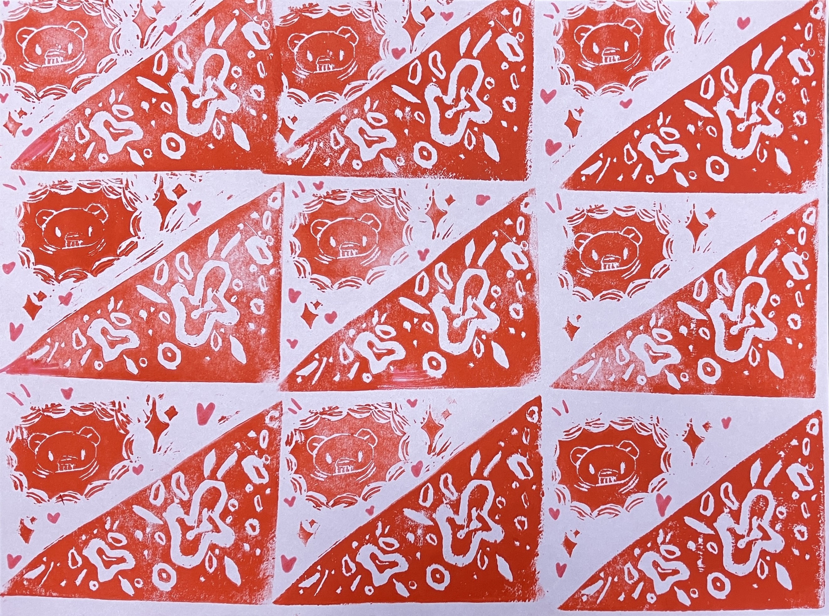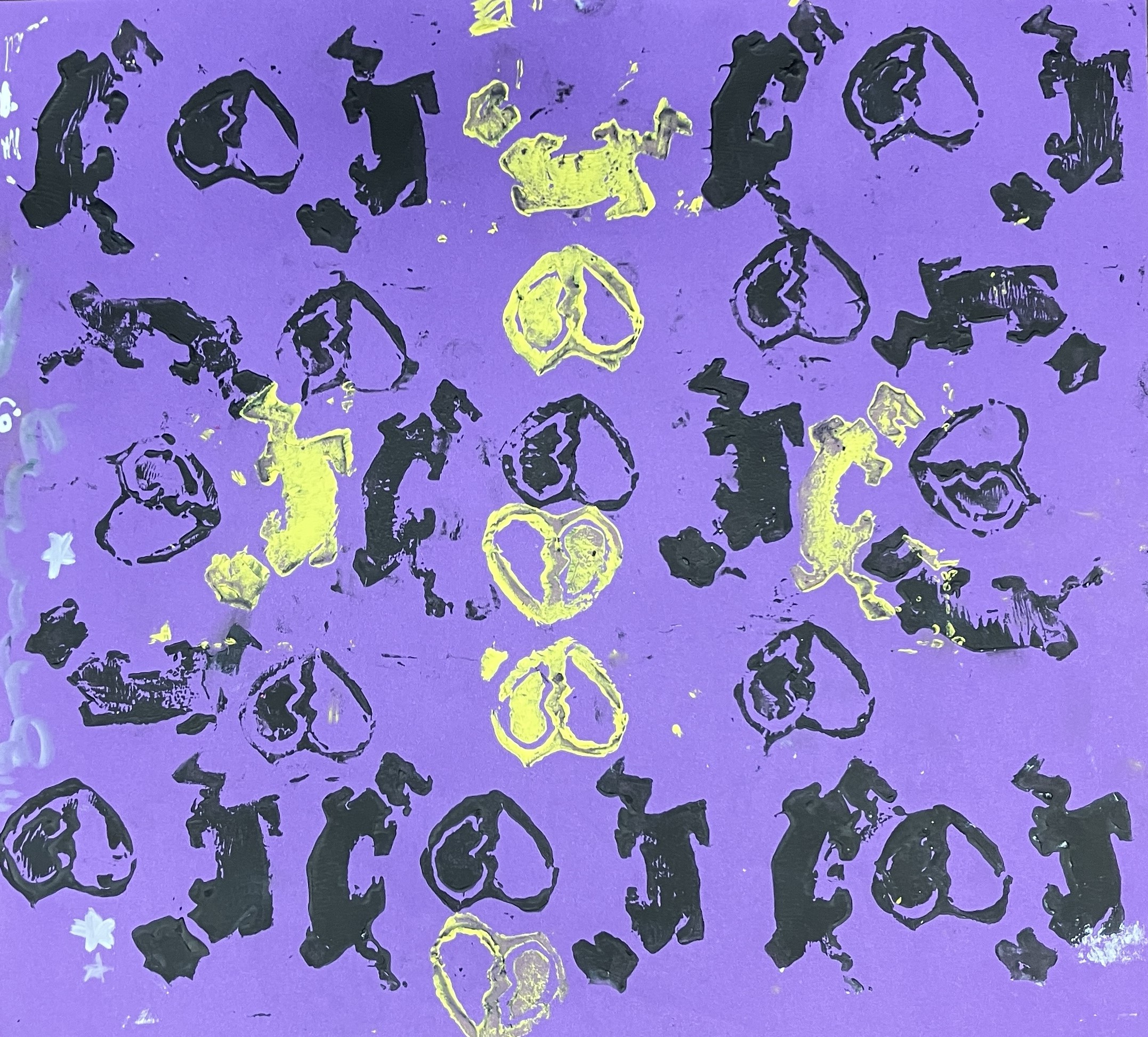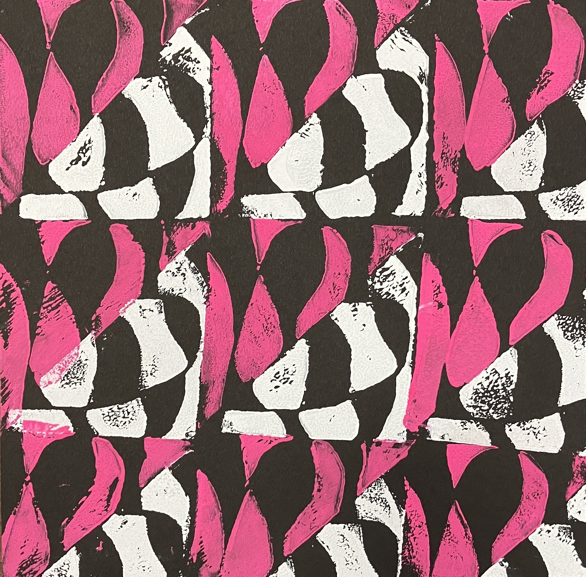 Students focused on pattern and repetition in this project by creating two linocut stamps.